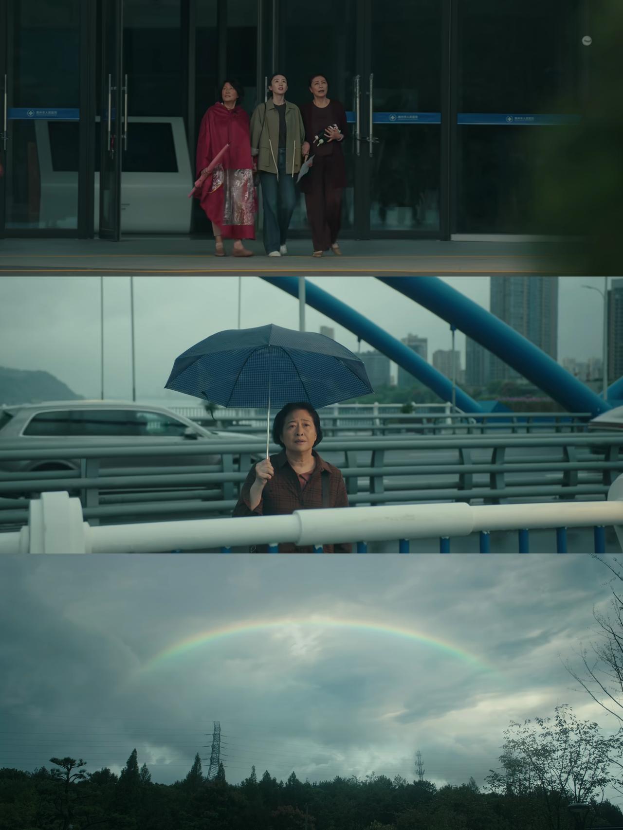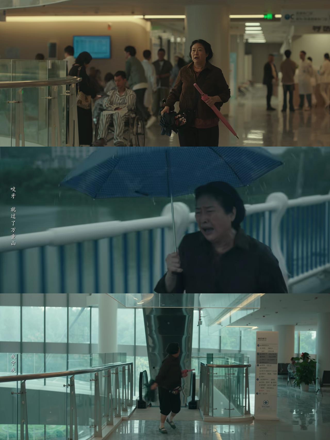 《四喜》沈明珠自己去产检,下雨被困在医院,发了个朋友圈:不慌不忙的等雨停。 结果,引来了3个妈争相送伞,各有所图。 第一位:养母岳秀娥 把明珠捧在手心里疼的岳秀娥,单纯是打从心底担心明珠不好,怕她淋雨,怕她生病,因为怀孕要特别注意,不能吃药。 雨淋湿了脸,坚持穿着雨衣骑车自行车赶到医院送伞,着急忙慌的,看着都怕她骑车出事,明珠不让她来,她也放心不下。 夫妻俩从小把明珠看得比亲生的还重要,亲妈亲爸冒出来,她担心女儿被抢走;弟弟调皮捣蛋,但是也真心爱着姐姐,也怕她被抢走。 第二位:婆婆何丽华 何丽华对沈明珠的态度最复杂,从看不上她到求她生下去世儿子的遗珠,以求安慰,态度一直高居不下。 看不起明珠的家境,看不上她复杂的出身,亲妈养母的事会搅成一堆,接受不了儿子非要这个女人,并反抗自己。 儿子意外去世,她强硬,她妥协,她无理取闹,全都为了自己,前期的她,从没认真考虑过明珠的处境和感受。 女儿开车陪她送伞,她带着对儿子的愧疚,也带着真心(不管是对孩子还是对明珠),这也成为了她对明珠态度转变的关键节点,终于喊出那声妈。 第三位:亲妈喻静香 喻静香咋咋呼呼的,虽然能理解她的愧疚和痛,但真心不喜欢她的行事风格。 喻静香双胞胎孩子,被亲妈送出去一个,还瞒到去世才开口说出真相,从当妈的角度看,喻静香也可怜。 但从事实出发,确实是好事,喻静香那会的家庭处境确实很难,丈夫打架入狱,母女俩辛苦拖着两个孩子,养得起,但绝对没办法把明珠养得如今那么好。 从知道女儿被送出去到找到本人,到忍不住相认闹出的矛盾,到平心静气接受女儿过自己的日子,妈妈的心也在平复。 雨中小跑着送伞,也意味着她和明珠的距离,需要她慢慢靠近,而不是一蹴而就的事。 喻静香看到养母下意识的转身,或许,也是她慢慢放下执念的开始。 女儿过得好就好,减少打扰,适时给她关心和帮助就很好。 对于沈明珠来说,生恩不如养恩大,但不管是哪位妈妈,不管她们是否有图,她们的爱都是给明珠最好的礼物。 或许,一切的一切,都会像雨后的彩虹般绚烂。