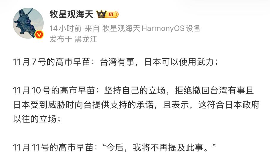 高市早苗怂了! 之前,高市叫嚣:“台湾有事,日本可以使用武力”; 现在,高市表示:“今后,我将不再提及此事”。 不过,不提不代表他们不敢,并不是收回,也不是反悔。 还是喜欢你桀骜不驯的样子,别怂啊! 82%的日本人支持你这个决定,100%的中国人也支持你这个决定呢。