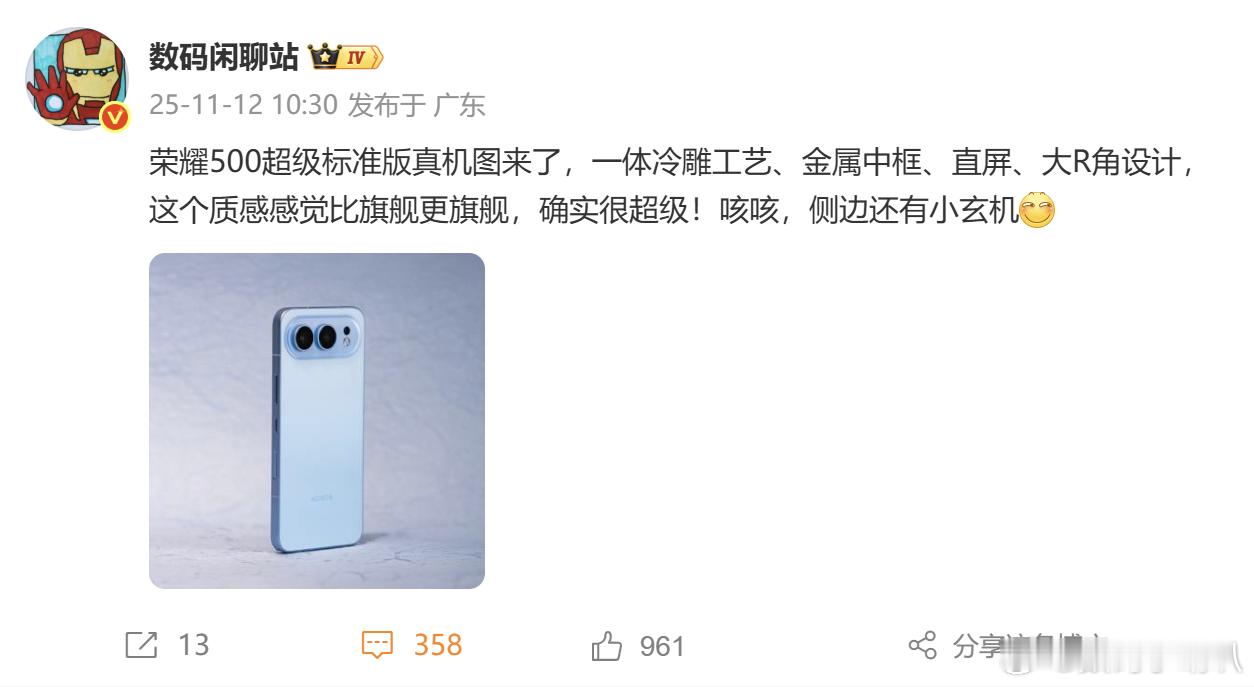 荣耀500性能是旗舰芯片,续航是档位最大电池,外观大改款而且是一体冷雕工艺,影像还有首发的破框而出live特效,看样子像是提档了
