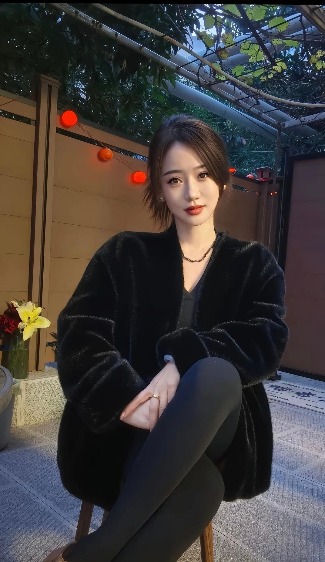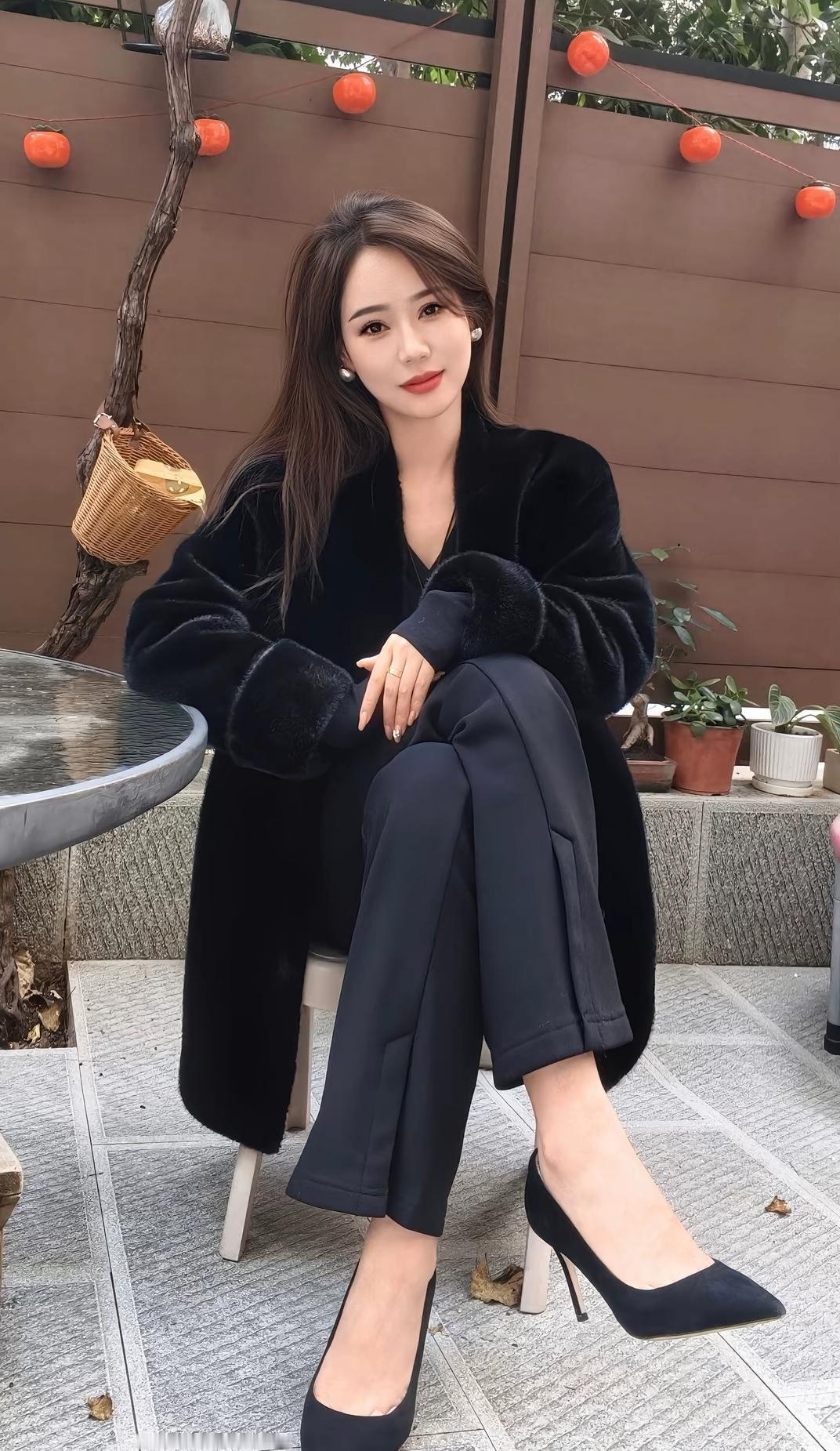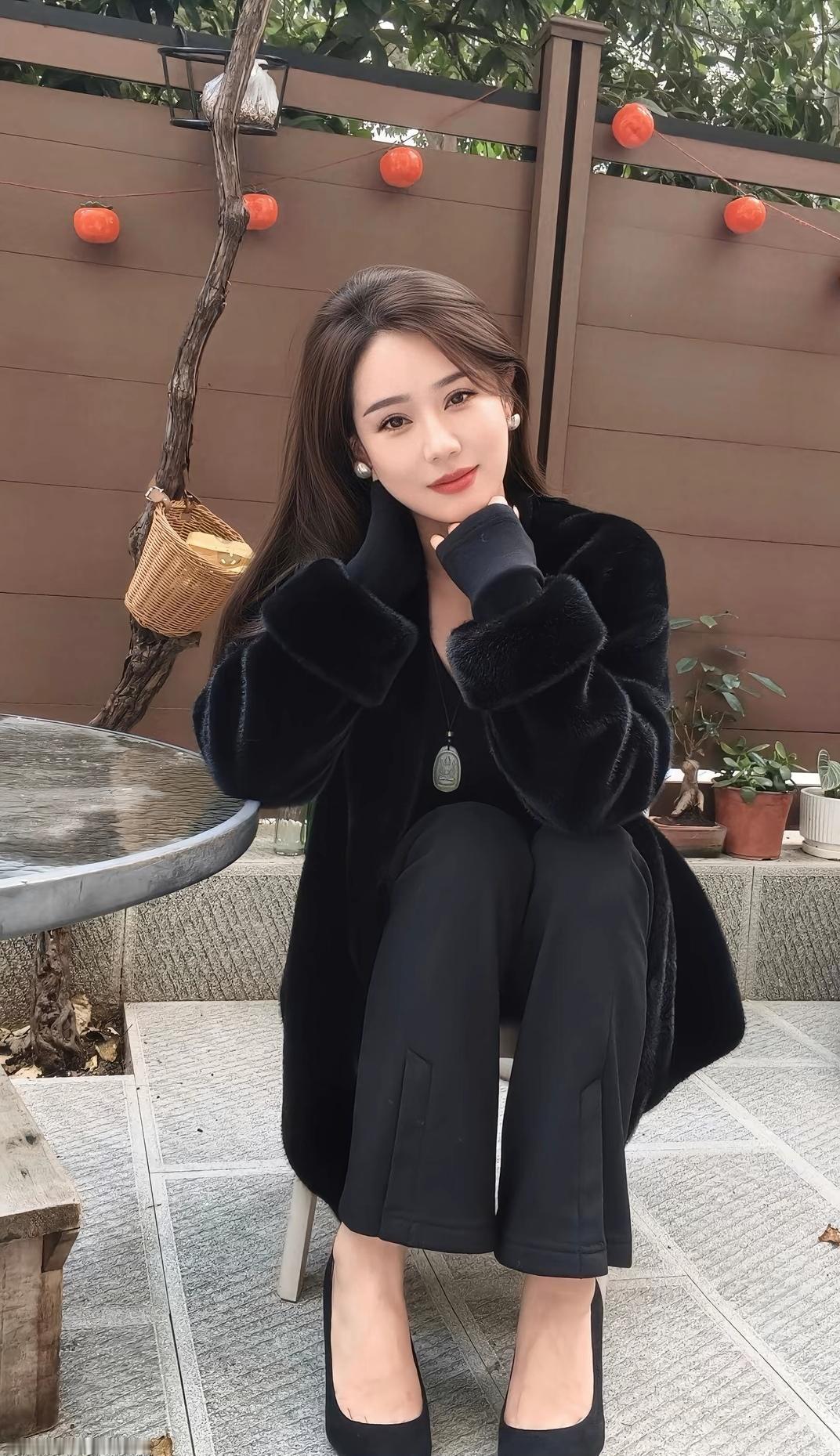 冬日穿搭指南:黑色毛绒外套+黑色裤子,温暖又时尚!