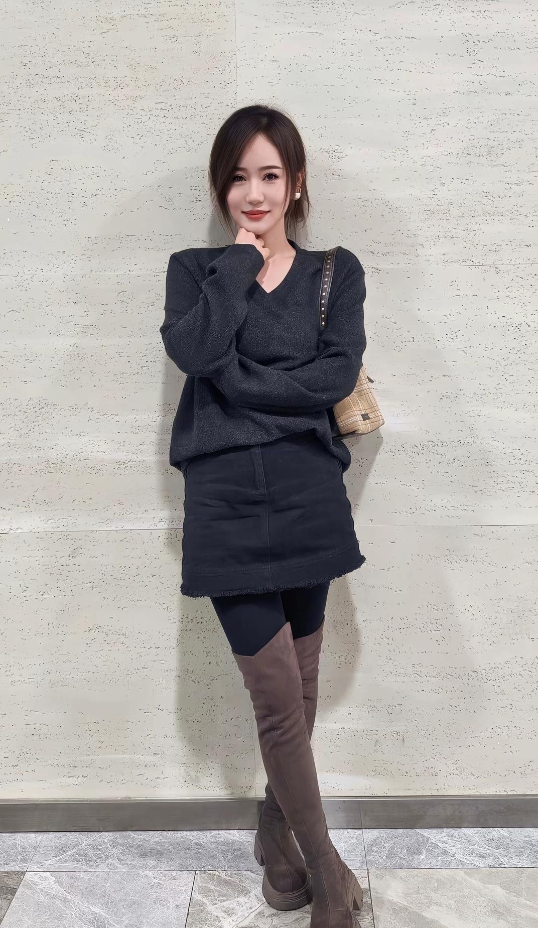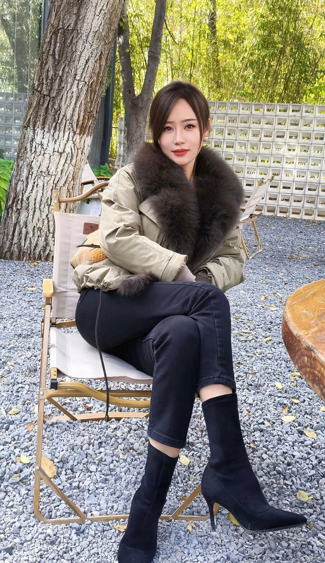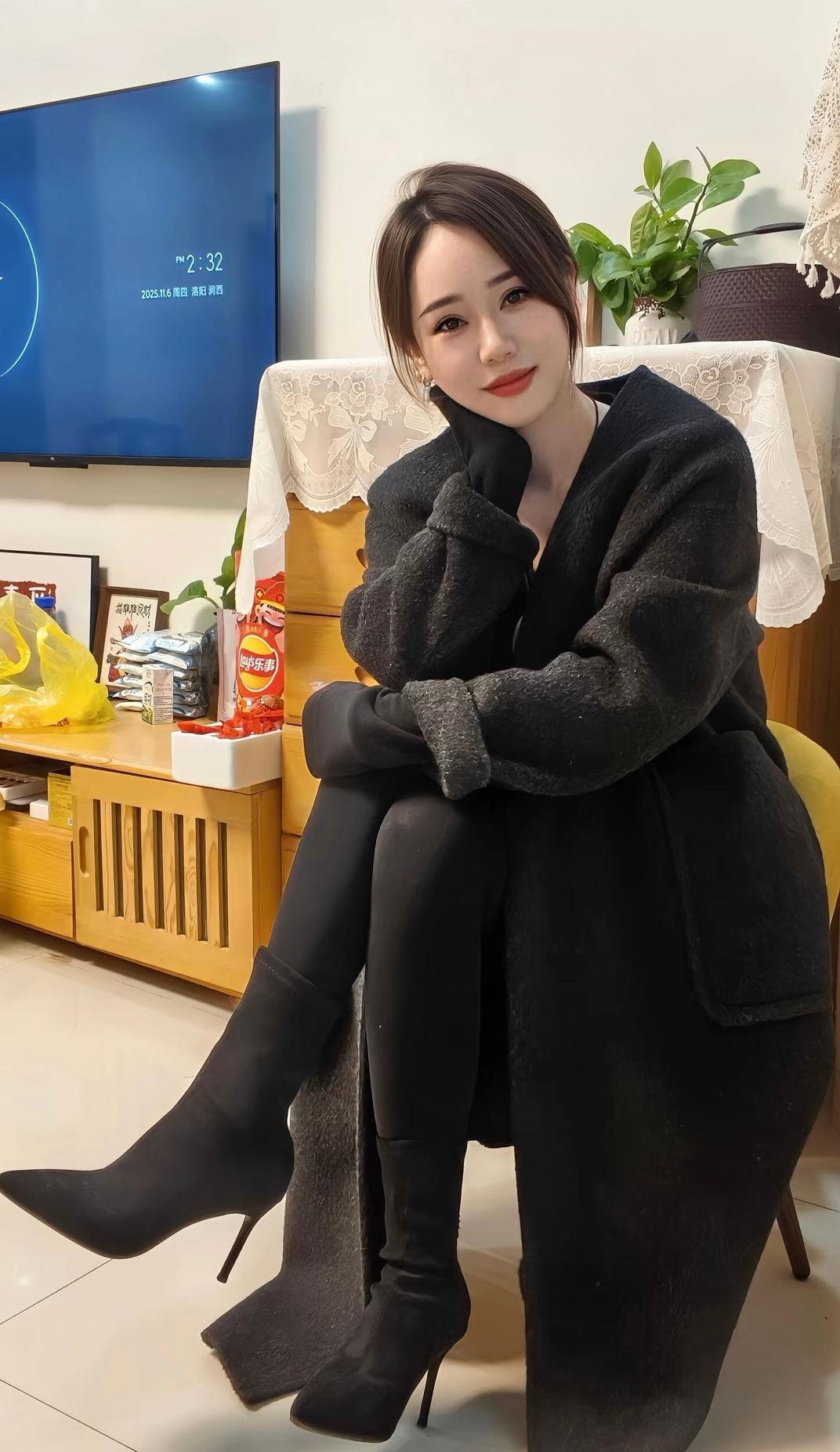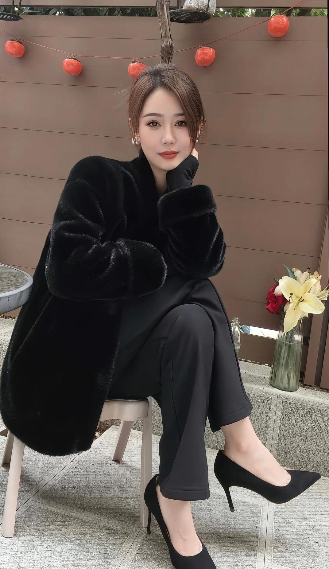 冬日穿搭指南:黑色毛绒外套+黑色裤子,温暖又时尚!
