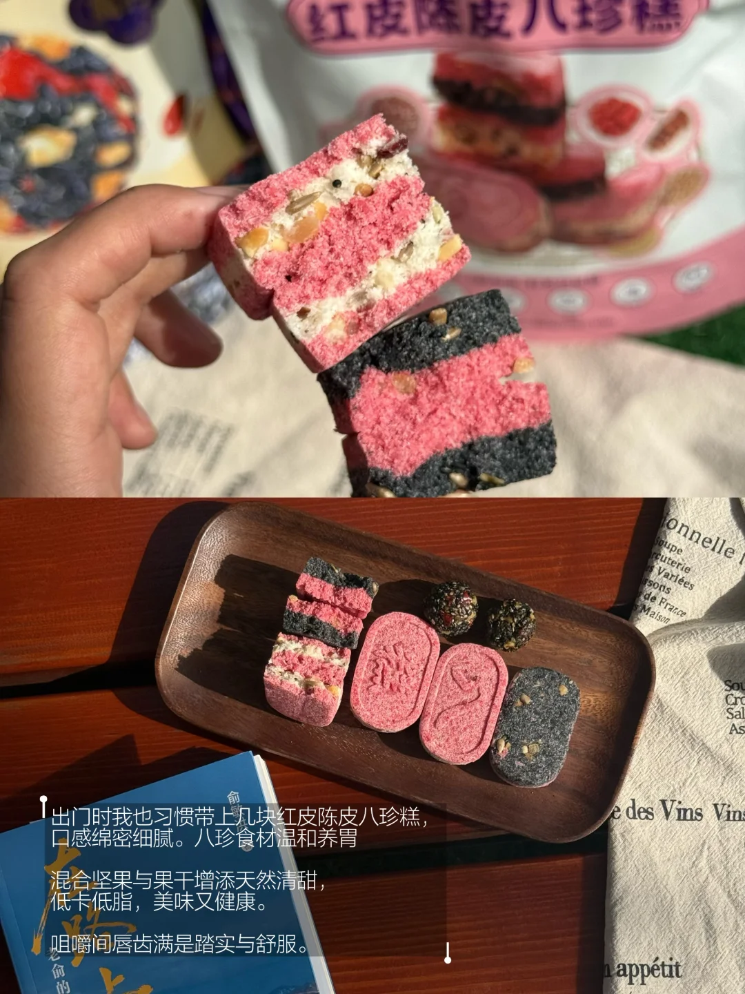 出门时我也习惯带上几块红皮陈皮八珍糕,口感绵密细腻。八珍食材温和养胃,混合坚果与果干增添天然清甜,低卡低脂,美味又健康。咀嚼间唇齿满是踏实与舒服。