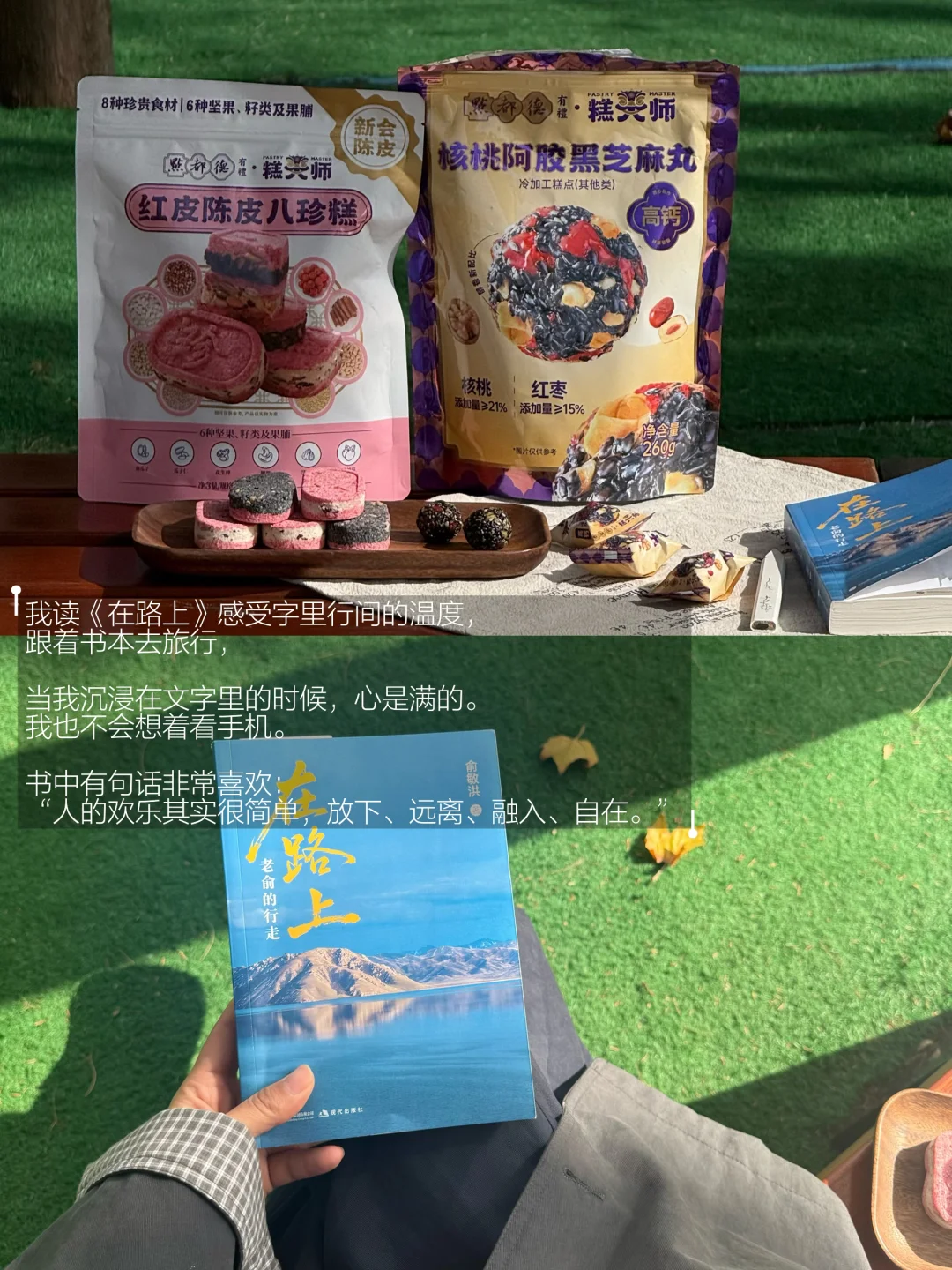 我读《在路上》感受字里行间的温度,跟着书本去旅行,当我沉浸在文字里的时候,心是满的,我也不会想着看手机。书中有句话非常喜欢:“人的欢乐其实很简单,放下、远离、融入、自在。”