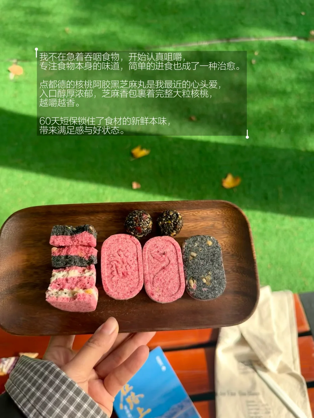 点都德的核桃阿胶黑芝麻丸是我最近的心头爱,入口醇厚浓郁,芝麻香包裹着完整大粒核桃,越嚼越香。60天短保锁住了食材的新鲜本味,带来满足感与好状态。