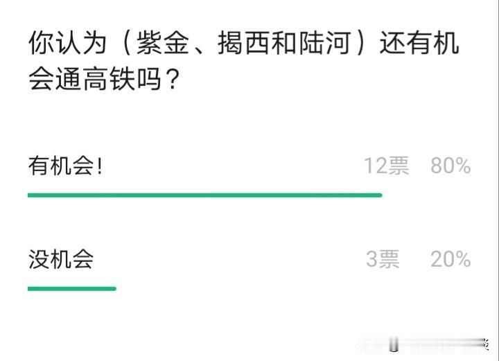 紫金、揭西、陆河还有机会通高铁吗? 河源紫金、揭阳揭西、汕尾陆河,这三座城市位于广东省珠三角与粤东之间,可谓是广东省东部地理位置的中心。然而,遗憾的是,目前这三个城市均未通高铁。 粤东地区已有赣深高铁、广汕高铁、厦深高铁、梅龙高铁和梅汕高铁这 5 条高铁,但这 5 条高铁都与这三个城市毫无关联。广东大规模高铁建设的时期,估计很快就要过去了,这三个城市没能搭上高铁建设的末班车,着实令人惋惜。 随着高铁投资的变化以及人口数量的下降,高铁建设投入预计会逐年减少。大家认为,河源紫金、揭阳揭西、汕尾陆河这三个城市还有多大可能通上高铁呢? 揭阳高铁 粤东高铁 汕尾高铁站台 高铁汕尾站 梅州高铁 海丰至广州高铁 翁源高铁
