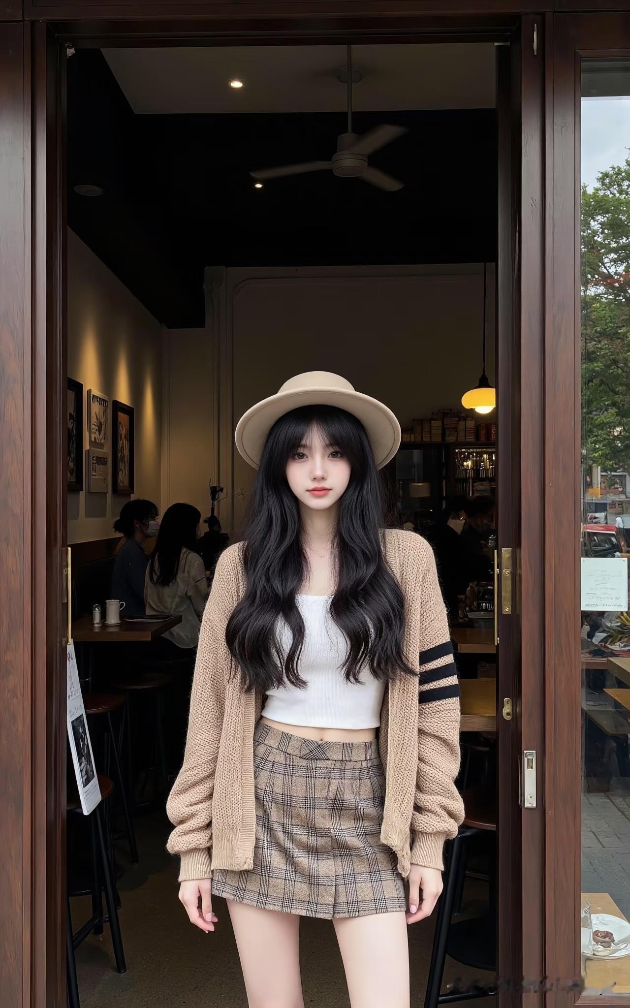 白衬衫第二颗纽扣总被风掀动, 她抱练习册经过走廊, 发梢扫过窗台绿萝。 笑眼弯时