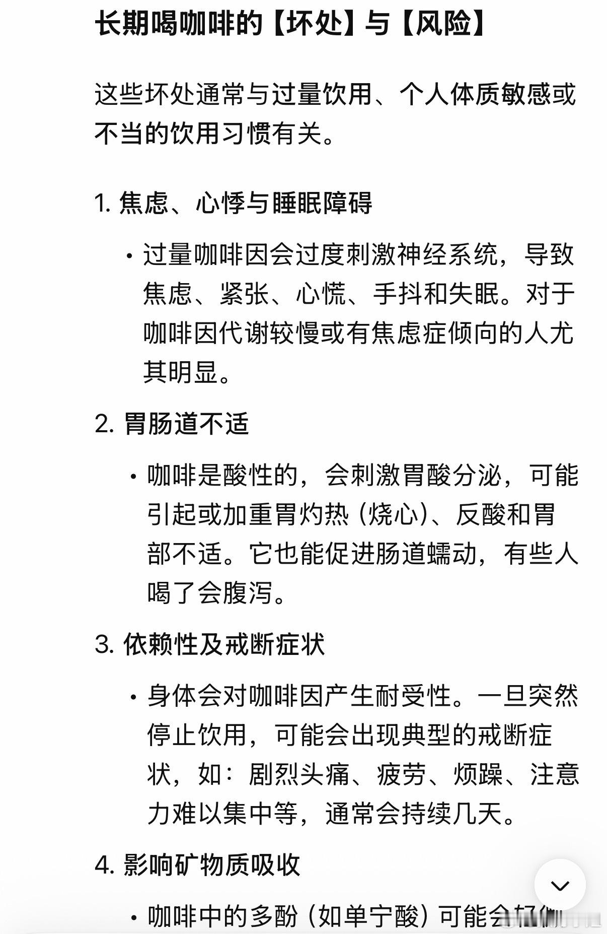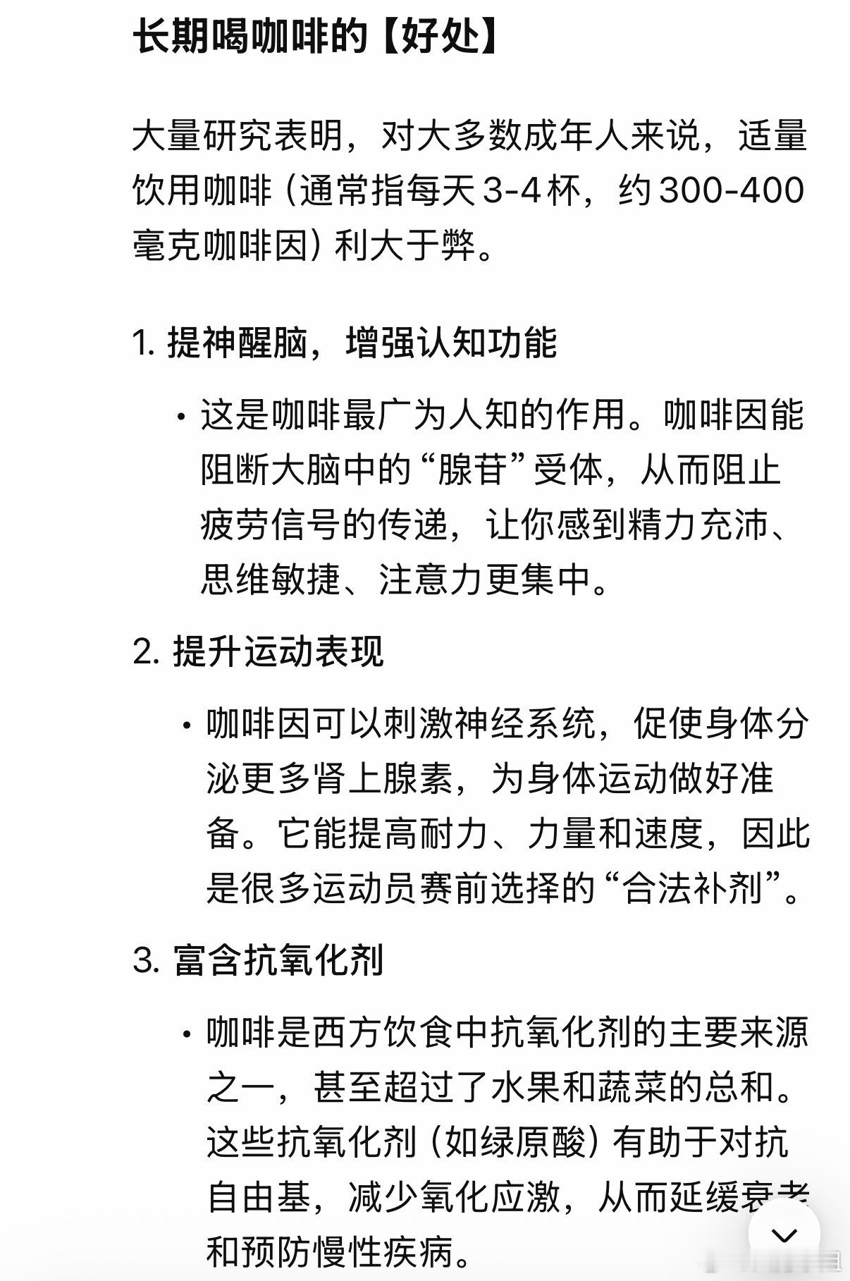 重度咖啡爱好者在此来帮你们罗列一下喝咖啡的好处和坏处毕竟凡事都有利弊嘛~其实适量的饮用黑咖啡反而是一种健康的生活习惯~更应该关注的是咖啡的类型比如加糖的咖啡长期喝肯定是不健康的每天来个四五杯的,过量饮用肯定也是不好的所以适量饮用+选对咖啡的口味+选对时间既满足了口欲,又能高效应对工作还能越喝越健康,何乐而不为呢?