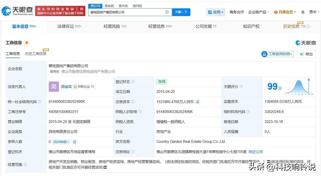 【碧桂园地产被冻结12.3亿股权碧桂园地产所持12.3亿股权被冻结】 天眼查天