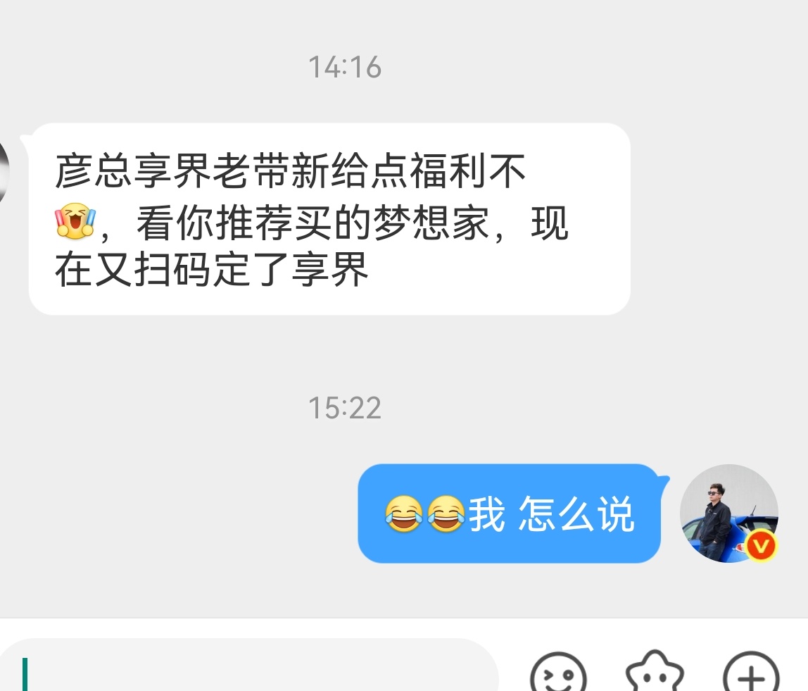 首先我买的车,都是我喜欢的。但不一定是适合每个人的,所以大家选择的时候谨慎一些。不过还是感谢这位兄弟的认可岚图梦想家和享界 S9 都很棒只是,什么才算福利呢?我跳个舞?