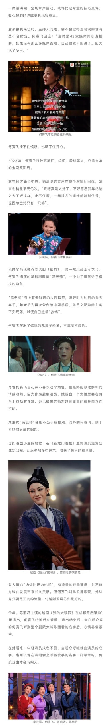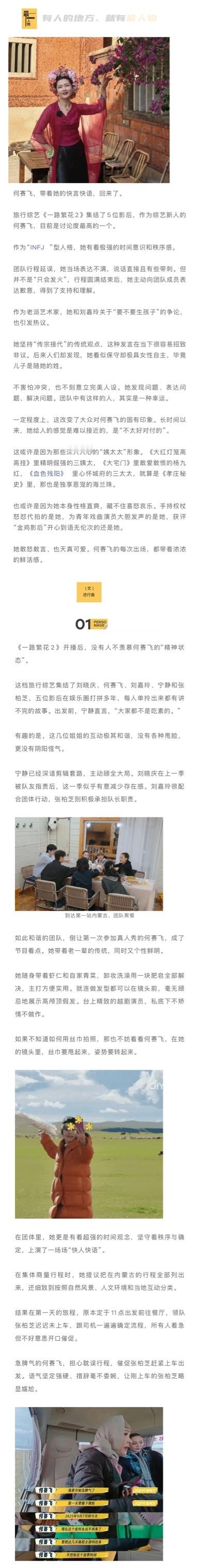 何赛飞,带着她的快言快语,回来了。 集结了5位影后,作为综艺新人的何赛飞,目前是讨论度最高的一个。她本身性格直爽,藏不住喜怒哀乐。手持权杖怒怼代拍的是她,为青年戏曲演员大胆发声的是她,获评“金鸡影后”开心到语无伦次的还是她。她敢怒敢言、也天真可爱。何赛飞的每次出场,都带着浓浓的鲜活感。