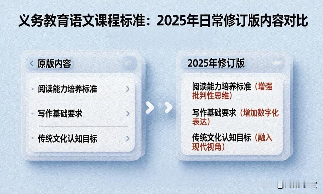 义务教育语文课程标准:2025年日常修订版内容对比 阅读全文: