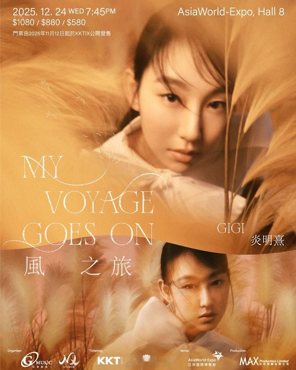 炎明熹平安夜亞博開騷 預告歌單大革新「大部分歌曲都未唱過」炎明熹將於12月24日在亞洲國際博覽館舉行一場《風之旅 MyVoyage Goes On Live》音樂會,今日開始公售,歌迷可以留意訂飛啦!炎明熹將於12月24日開騷!(ig)早前她為演唱會拍攝海報,這次她以《風之旅》去命名音樂會,「因為我覺得『風』好能夠表達我個世界,『風』可以有好多唔同嘅形態,例如好多歌迷支持我,好多人對我好,我就滿心都係『暖風』啦,咁有時都會唔同狀態,會有冷風,更會打風添。哈哈。今次成個音樂會製作上面我都有參與,我想帶出自己好多感激的事,好多反思,好感謝我可以用到音樂表達到我内心嘅世界,同埋亦都希望可以透過音樂,比到大家睇到另一面一個進化當中的自己。揀歌方面,會有少少驚喜,所以大部分嘅歌曲都係未唱過,希望有一個耳目一新嘅感覺。」耳目一新。(官方圖片)設計師及攝影團隊於現場set 了一個人造田實景給GIGI拍照,一到場她已非常驚訝,馬上跳進去,「嘩,好真。有泥土添!」摸著芒草她又搞笑道,「好似摸貓貓,哈哈。」玩得非常開心。(官方圖片)GIGI直言已經有段長時間沒跟歌迷聚會,想了很久用什麼形式,最後覺得還是以小型音樂會的方式,歌迷應該最開心,「所以我就在一個普天同慶日子,平安夜同大家一齊過啦!希望可以創造一個美好回憶!我會努力加油,做最好表演。」GIGI直言已經有段長時間沒跟歌迷聚會。(官方圖片)
