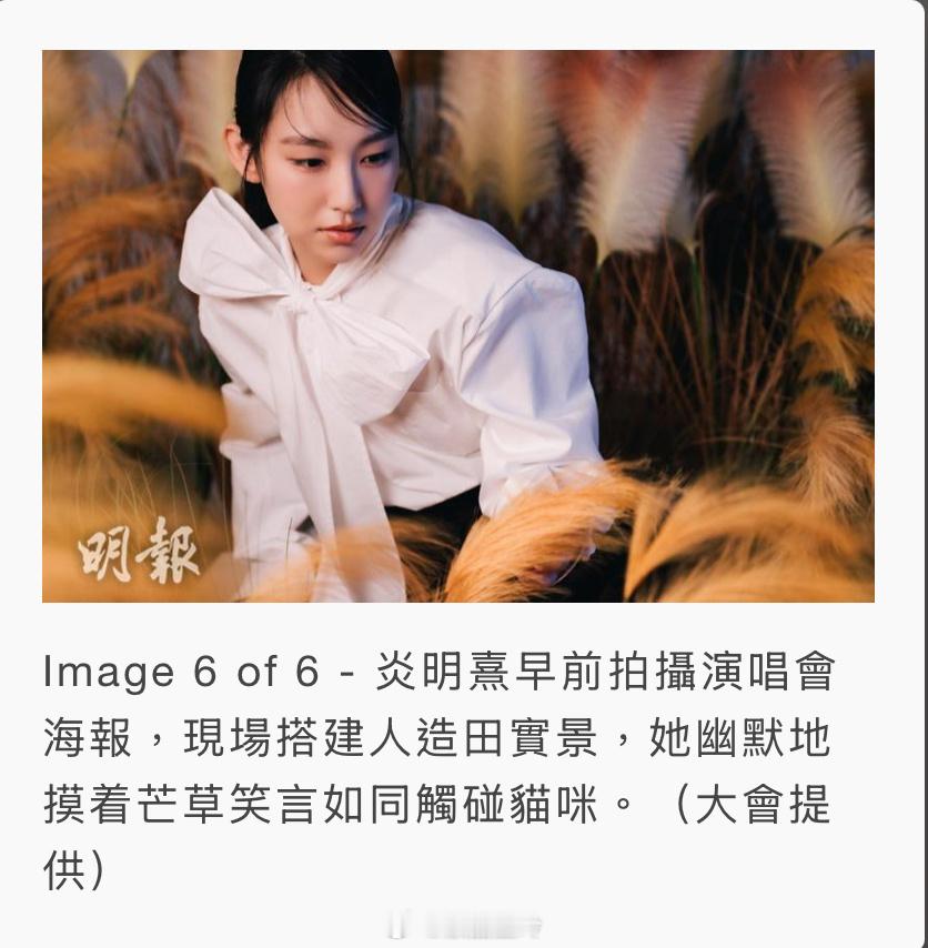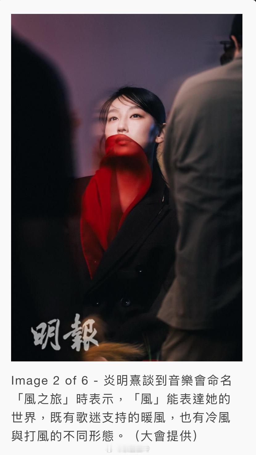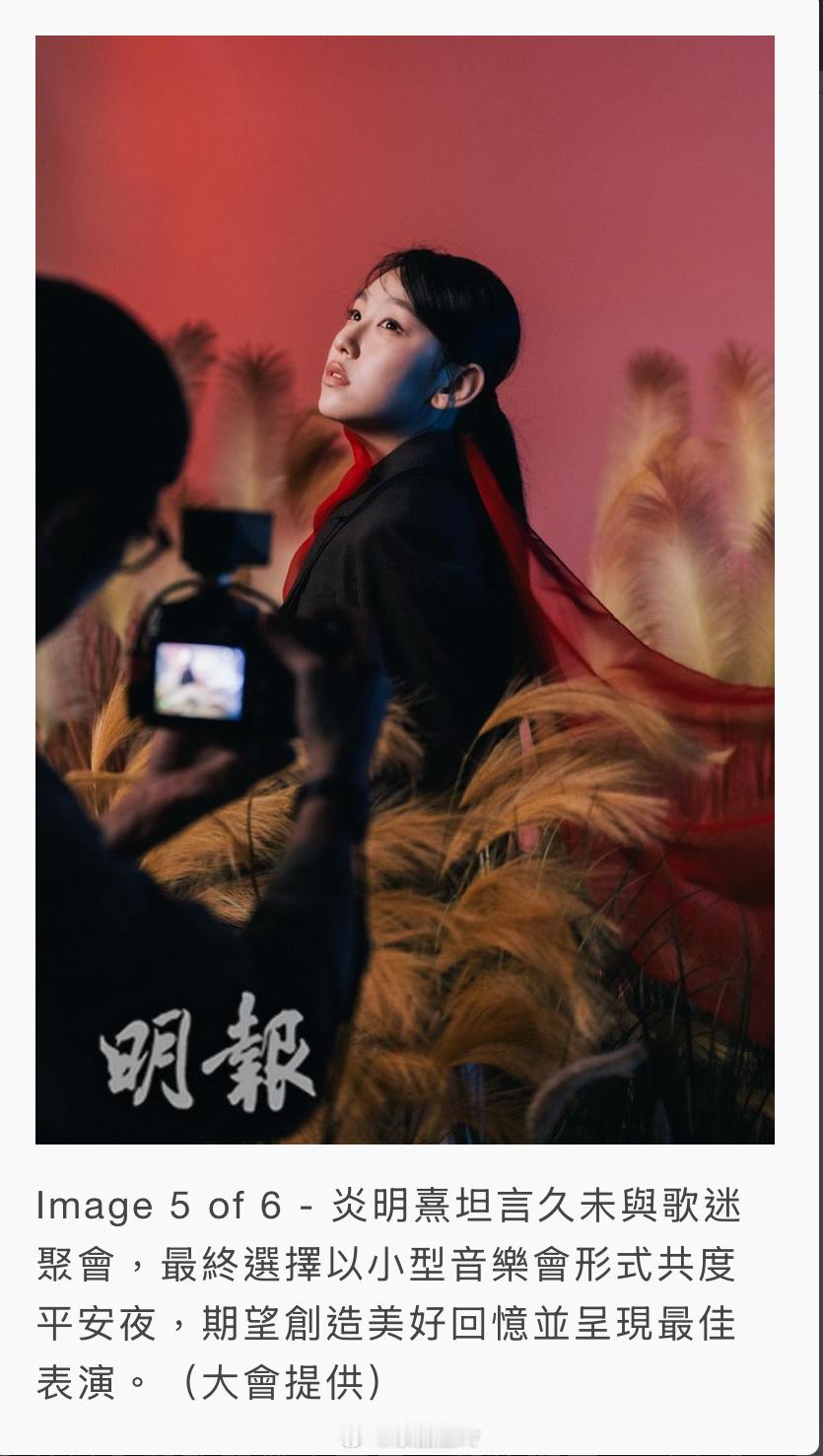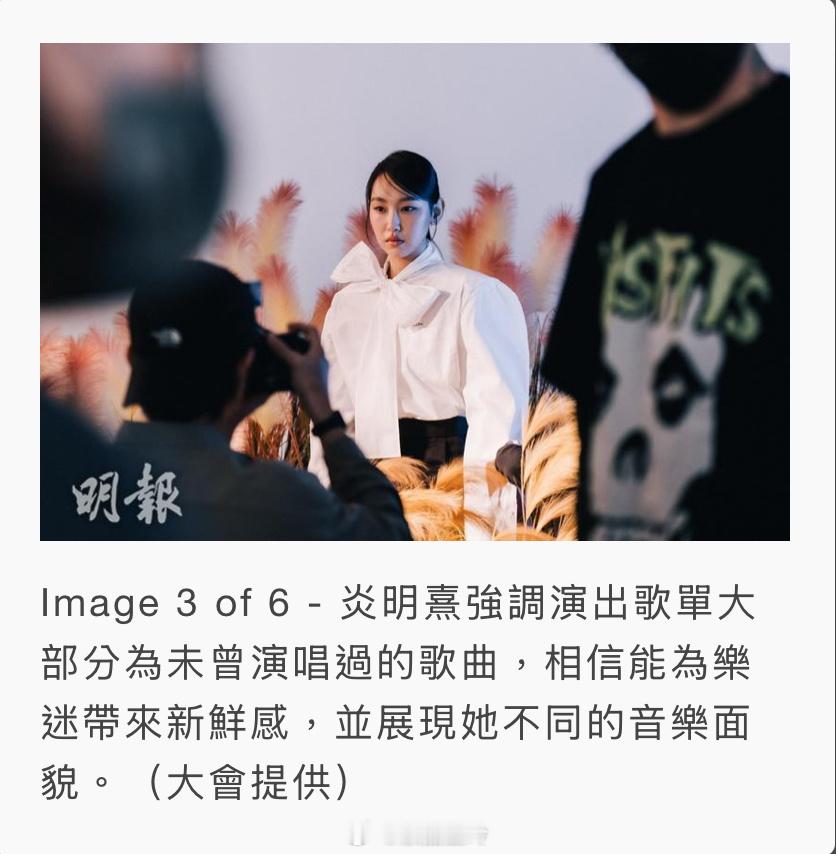 【明報即時】炎明熹平安夜亞博開唱 預告演出歌單有驚喜 炎明熹將於12月24日平安夜假亞洲國際博覽館舉行《風之旅》音樂會,門票公開發售,並以全新歌單帶來耳目一新的驚喜。(大會提供 / 明報製圖)炎明熹(Gigi) 將於12月24日平安夜假亞洲國際博覽館舉行《風之旅 My Voyage Goes On Live》音樂會,門票今天(12日)公開發售。Gigi談到是次音樂會以「風之旅」命名時說︰「因為我覺得『風』好能夠表達我個世界,『風』可以有好多唔同嘅形態,例如好多歌迷支持我、好多人對我好,我就滿心都係『暖風』。不過,我有時都會有唔同狀態,會有冷風,更會打風添,哈哈﹗」Gigi透露在籌備過程中,她參與了製作部分,希望能透過音樂會表達出她的感激和反思。她說︰「好感謝我可以用音樂表達到我嘅內心世界,我都希望可以透過音樂,畀大家睇到進化當中嘅我。」Gigi透露演出歌單是她大部分未唱過的歌,相信會令樂迷驚喜,有耳目一新的感覺。Gigi早前為演唱會拍攝海報。設計師及攝影團隊於現場搭建了一塊人造田實景,Gigi看見後非常驚訝,馬上跳進去。她說︰「嘩,好真。有泥土添!」她摸着芒草搞笑道︰「好似摸貓貓,哈哈﹗」Gigi坦言已有段長時間沒跟歌迷聚會,為此想了很久該以什麼形式再聚,最後決定舉行一場小型音樂會,相信歌迷應該最開心。她說︰「所以,我就在一個普天同慶日子,和大家一同度過平安夜,希望可以創造一個美好回憶﹗我會努力加油,做最好表演。」(即時娛樂)