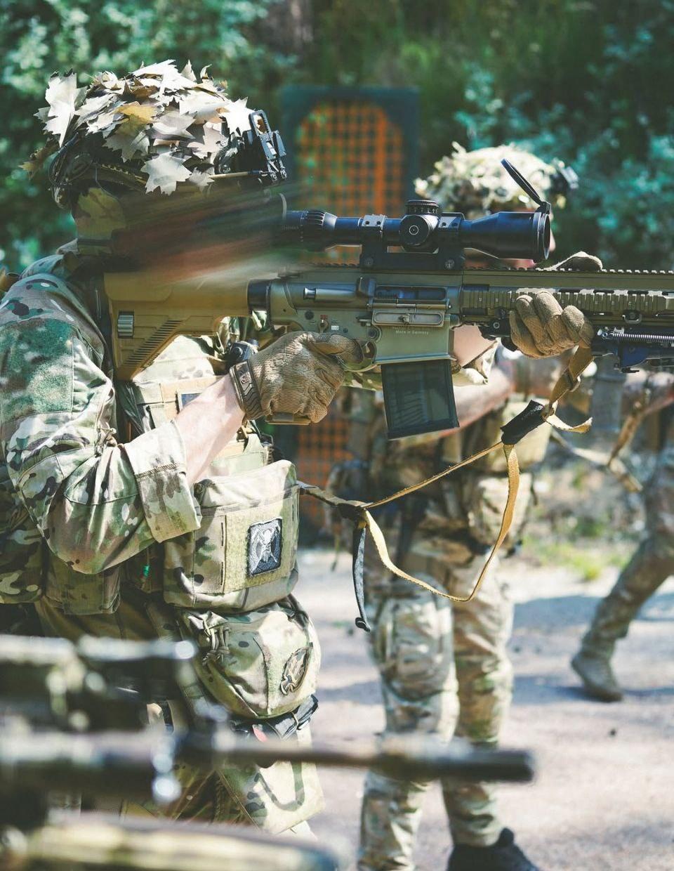 乌克兰国防部情报总局"大锤连"已列装德国G28狙击步枪(即HK为德国联邦国防军定制的HK417版本),该枪配备标准光学瞄准镜——施密特-本德尔PM II Ultra Short 3-20x50 FFP型。