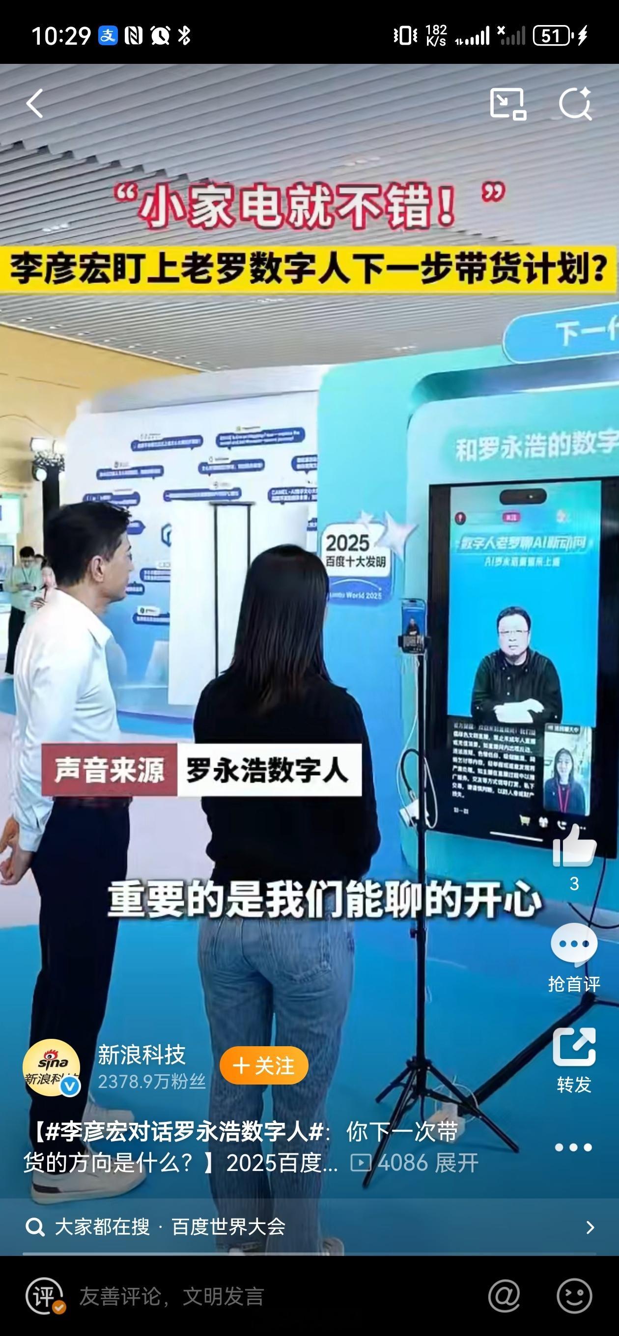 这波跨界联动真的杀疯了!李彦宏的科技视角+罗永浩数字人的带货基因,聊出来的不仅是梗,还有满满的未来感。数字人能精准接住带货方向的提问,还能顺势唠嗑,这互动流畅度真的惊到我。原来科技和带货能这么搭,期待以后看到更多AI+各行各业的惊喜组合。