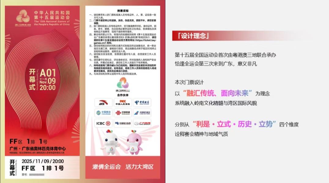 方寸之间力展大湾区景象!十五全运会开幕式门票出圈了 广东奥林匹克体育中心昨晚亮着灯,第十五届全运会开幕式开始了,粤港澳三地一起办的这场运动会,连带着那张特别设计的门票,让观众们都在聊。 听说这张门票的设计团队熬了几十个通宵才敲定,广东省广告集团的设计师把传统和未来两个词揉进每处细节,颜色选了红,形状像湾区人熟悉的利是,拿在手里跟红包一样厚实,有人笑着说,这哪是门票,分明是攥在手里的吉祥物。 最让人没想到的是票面居然竖着设计,现在大家手机都是竖着用,这样发朋友圈方便,当壁纸也顺手,设计里场馆的轮廓和金线跑道缠在一起,有人说十五条金线是代表十五运,也有人觉得像跑道,反正每个地方都能掰扯半天。 这张纸其实没那么软,设计师往里头加了多种防伪花样,一打紫外线就冒出红的紫的绿的图案,手指一摸能感觉到字是鼓起来的,有收藏的人说,这比演唱会门票还硬气,将来肯定能当纪念品收着。 开幕式一结束,网上就开始传门票和周边的事,省广集团不光管票务,还操办了“十五运·十五城”活动,帮广州推城市宣传,有网友说,这届全运会连带把商圈都给带火了。 现在街上不少人举着门票拍照,说是要留个念,谁想得到一张薄纸,能把体育比赛、传统习俗和防伪技术全连在一块,这大概就是大湾区想让人看见的活法儿。