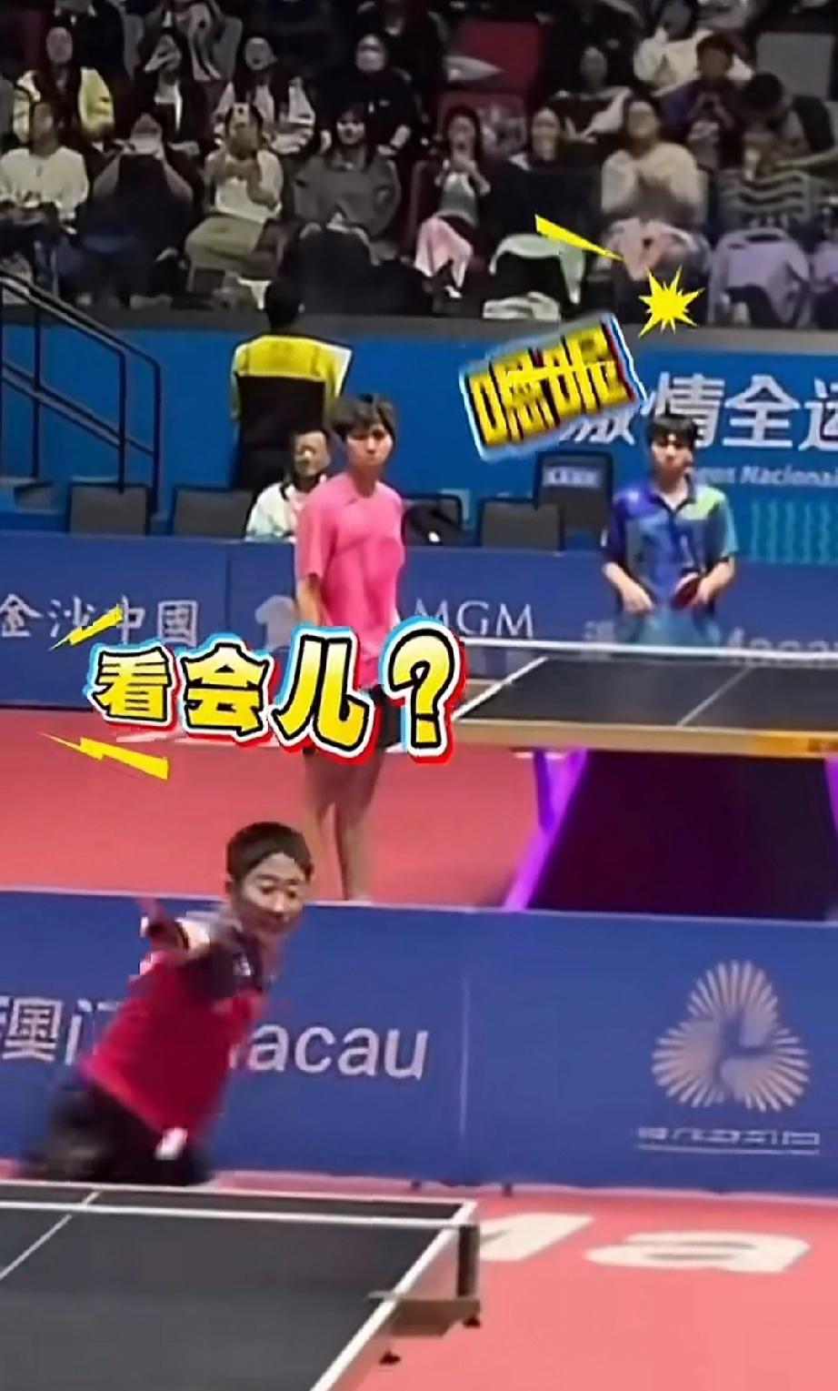 曼昱不仅把对手打蒙了,把隔壁的队员也看懵了。 要不说看曼昱比赛太有观赏性了,太刺激了。 曼昱与范思琦的比赛,刺激过瘾。现场加油助威不绝于耳,意外的是隔壁桌的比赛都暂停不打了,拿着球拍瞪着眼睛看曼昱打球,与其自己打,不如学学经验。 可以看到曼昱的护台能力太强了。真不愧是国家队选手。就是不一样!