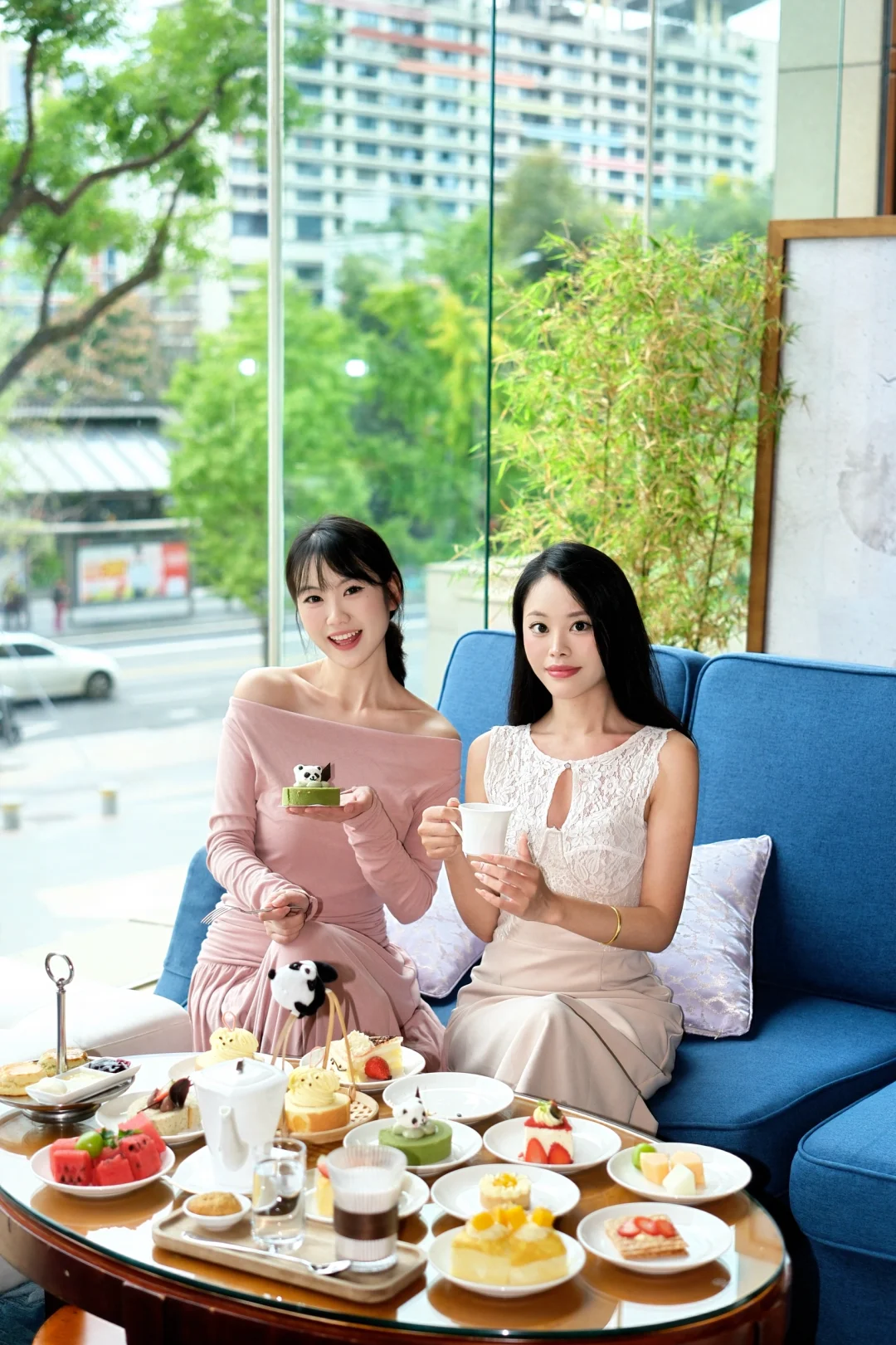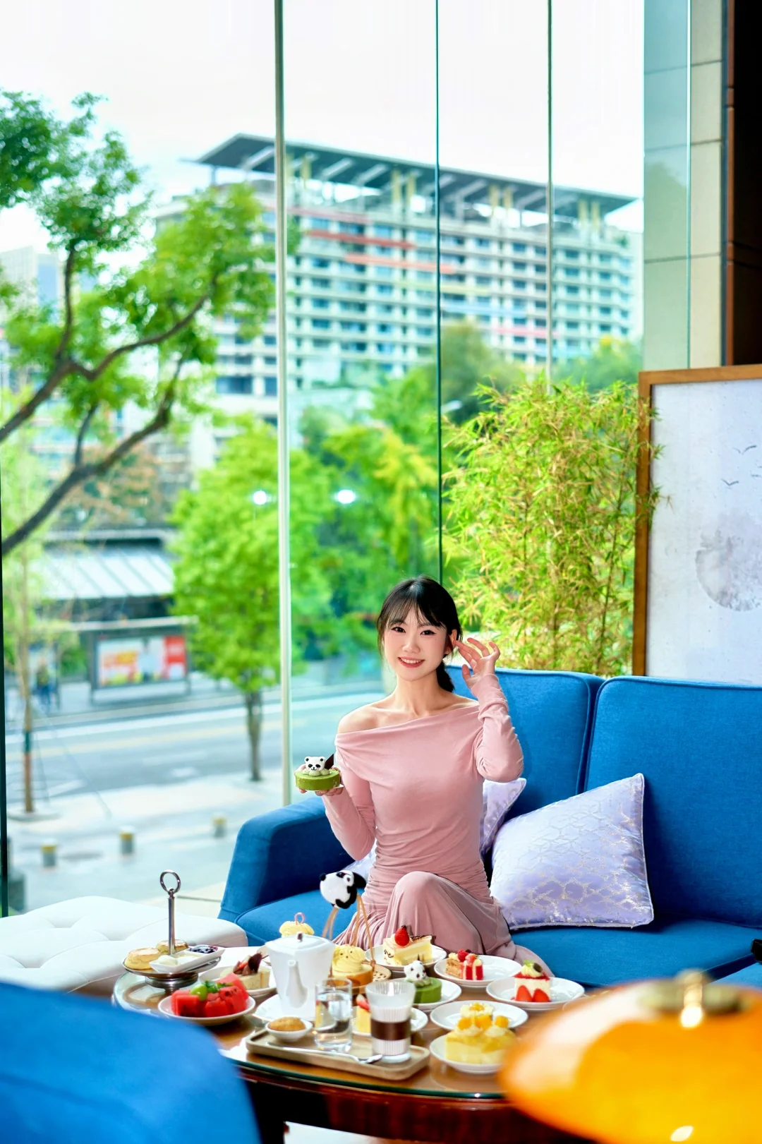 谁懂啊! 在成都市中心又发现一家巨巨巨出片的下午茶 就在香格里拉酒店2楼大堂酒廊 超大落地窗可以直接看见安顺廊桥 复古雕花沙发、水晶吊灯 像闯进了法式电影里的客厅🎬 · 🍰自助甜品 爱吃甜食的姐妹请无脑冲!!! 10+款甜品无限续的快乐,谁吃谁迷糊! 提拉米苏、榴莲千层、巴斯克、各种水果…… 配上红茶或者咖啡 真的太幸福了 • 📸 闺蜜局拍照打卡tips ✔️选靠窗的沙发座!以窗外的树景➕街景为背景真的很片 ✔️拿一块甜品举在脸颊旁,或用咖啡杯挡半张脸,慵懒松弛感直接拿捏; ✔️女孩子建议穿法式碎花裙、针织开衫或温柔色系衬衫,和这里的复古调调适配度100%~