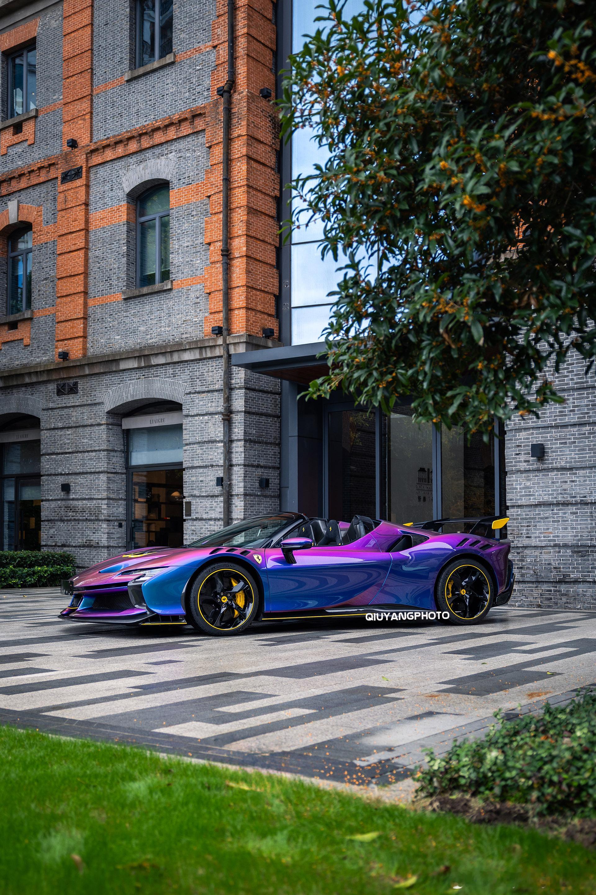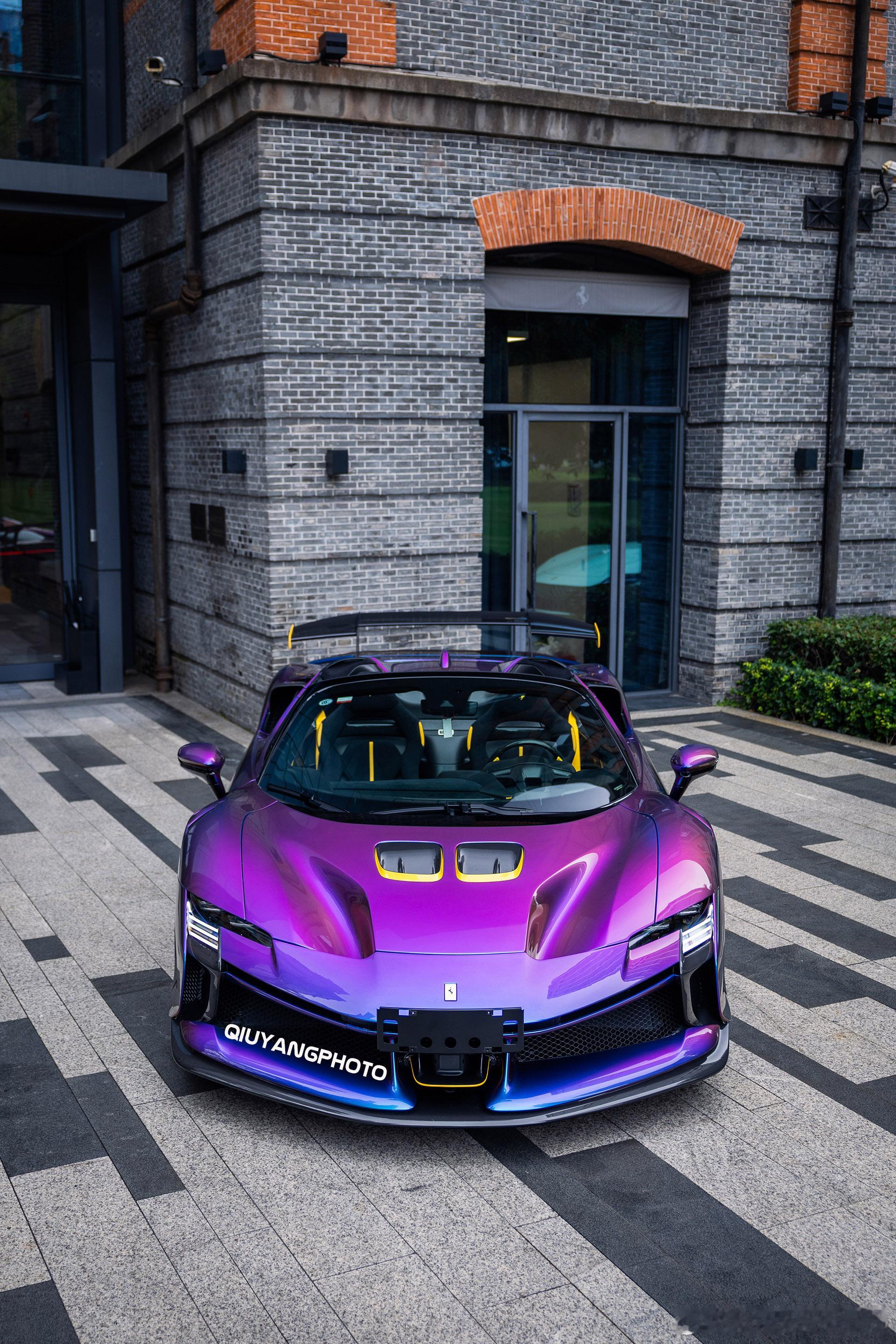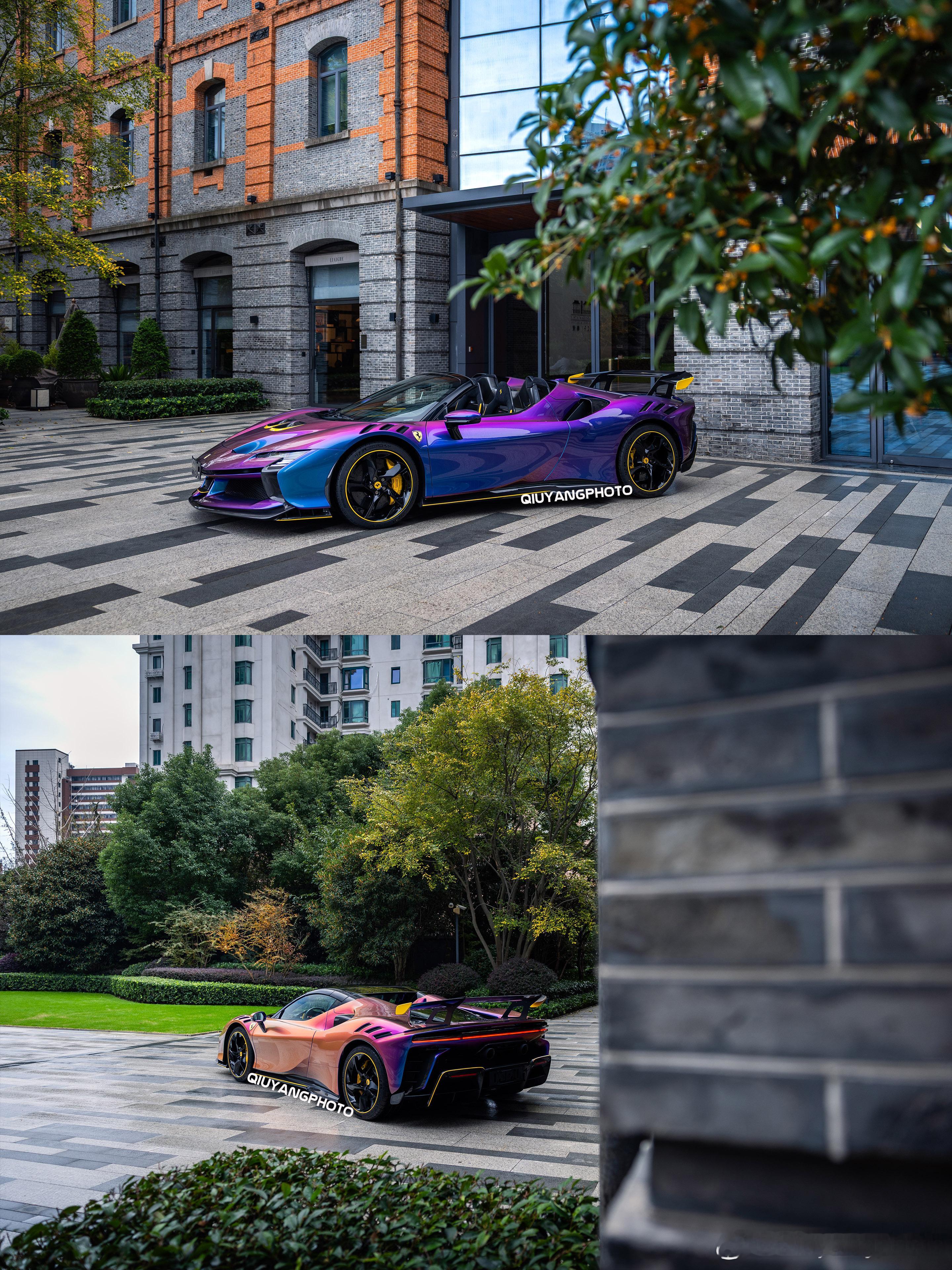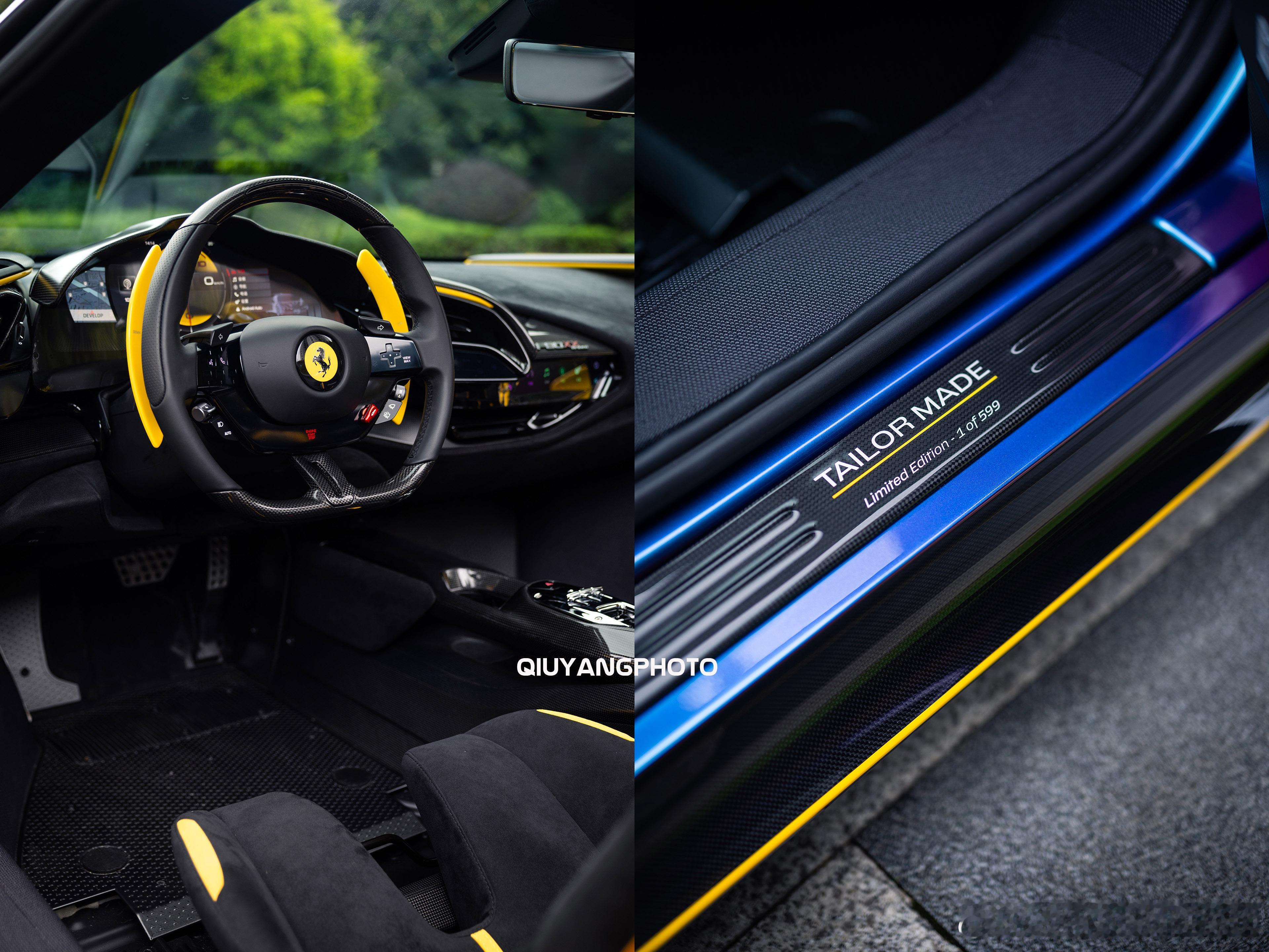 Ferrari SF90XX Spider 特别的Azzurro Iridescente 漆面,辅以Giallo Modena的黄色拉花及内饰点缀🙈 这个漆面实在太吸睛了