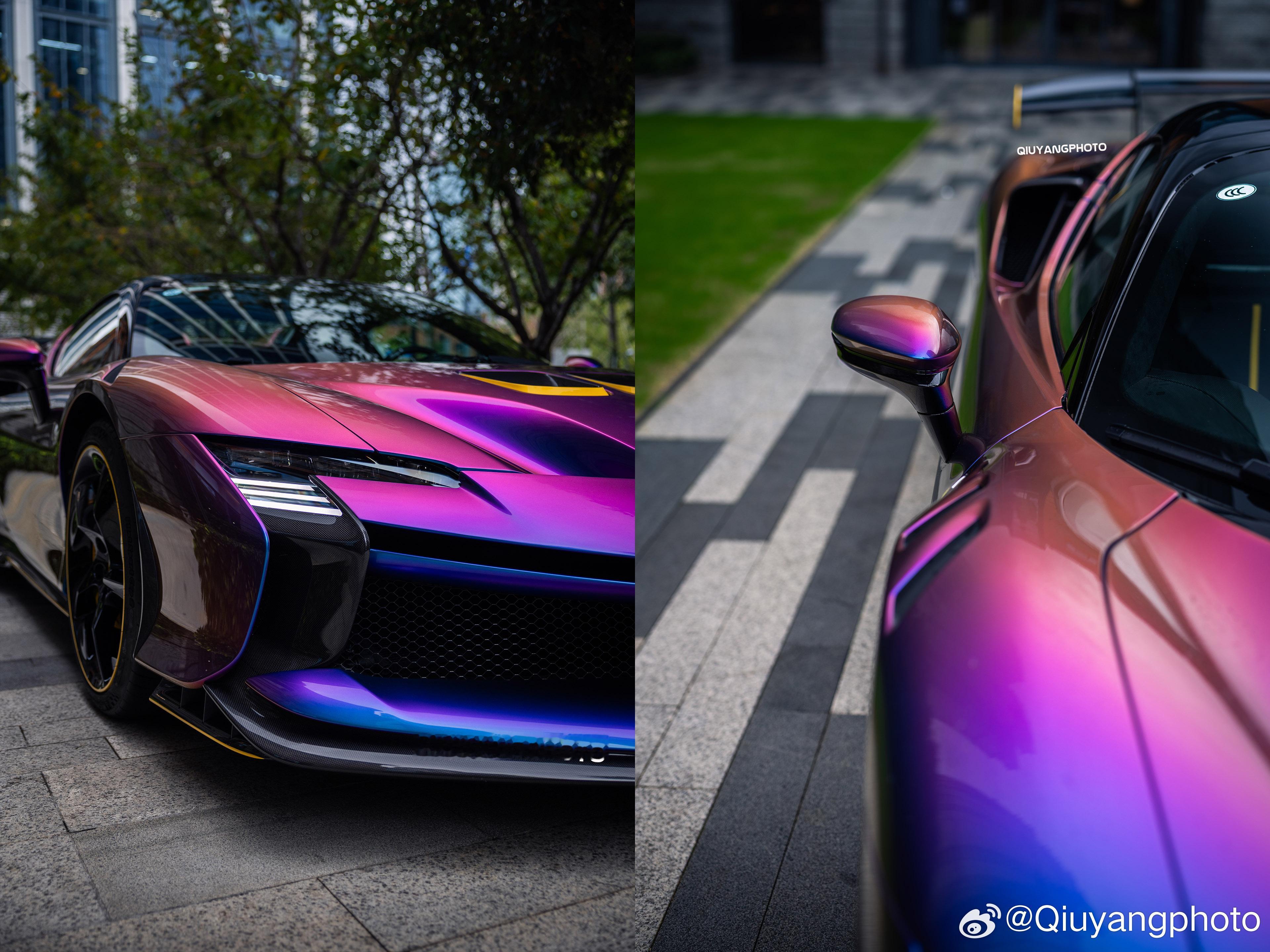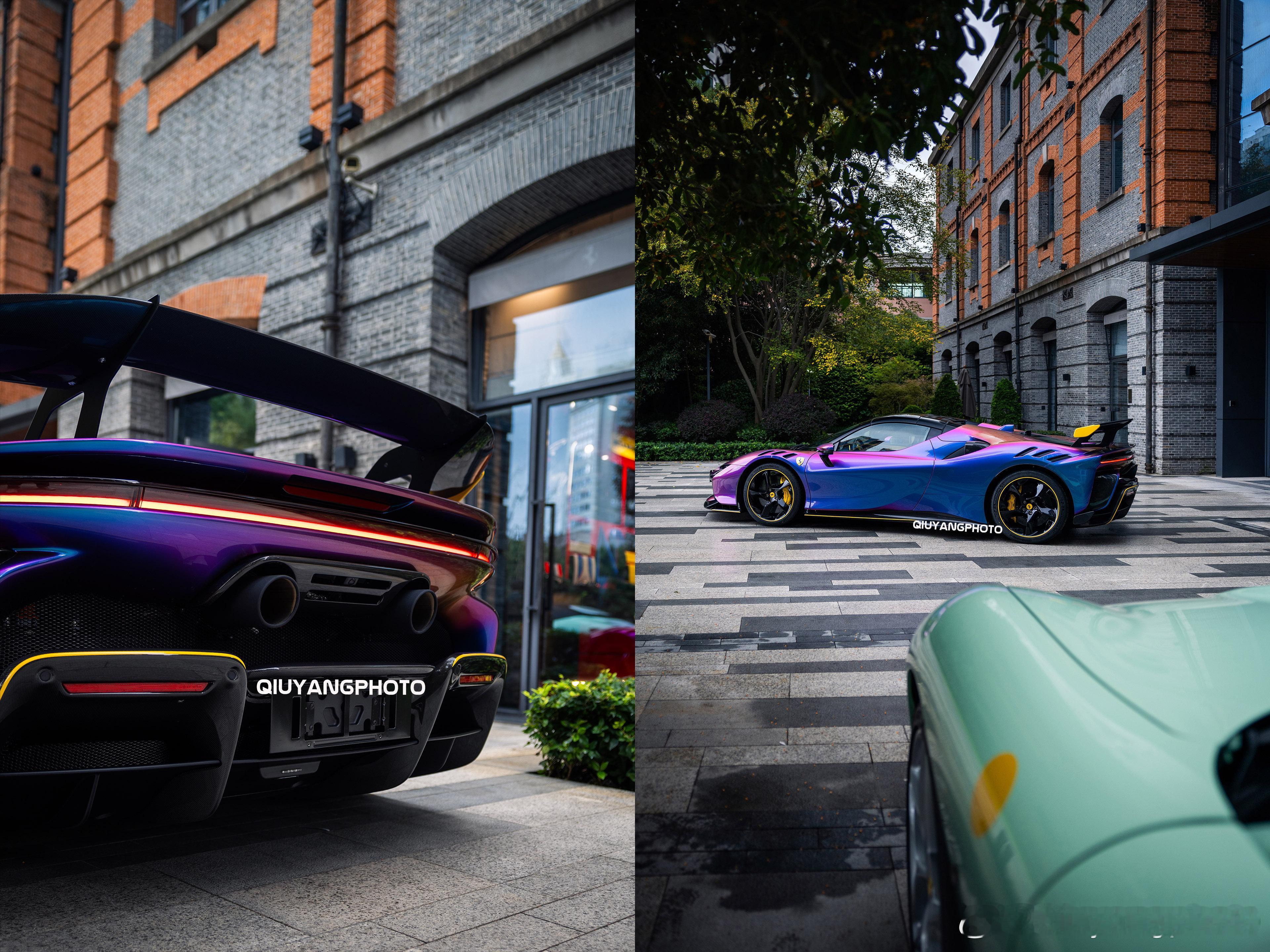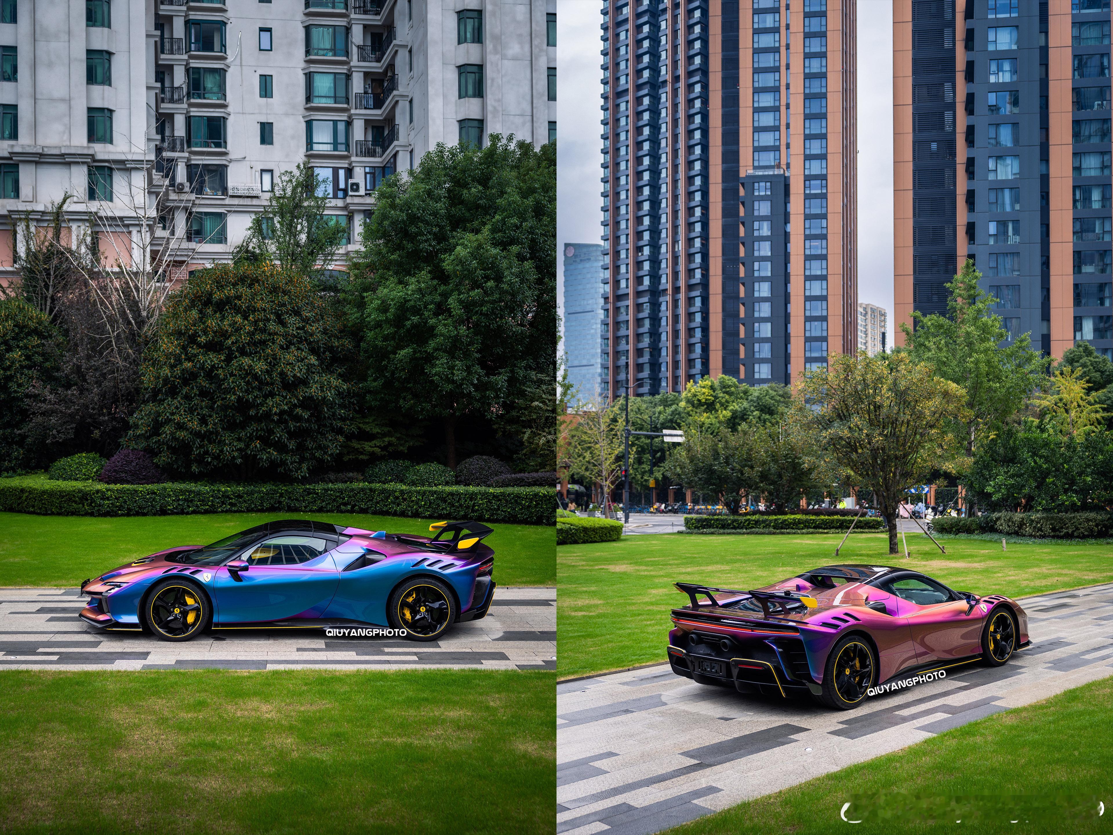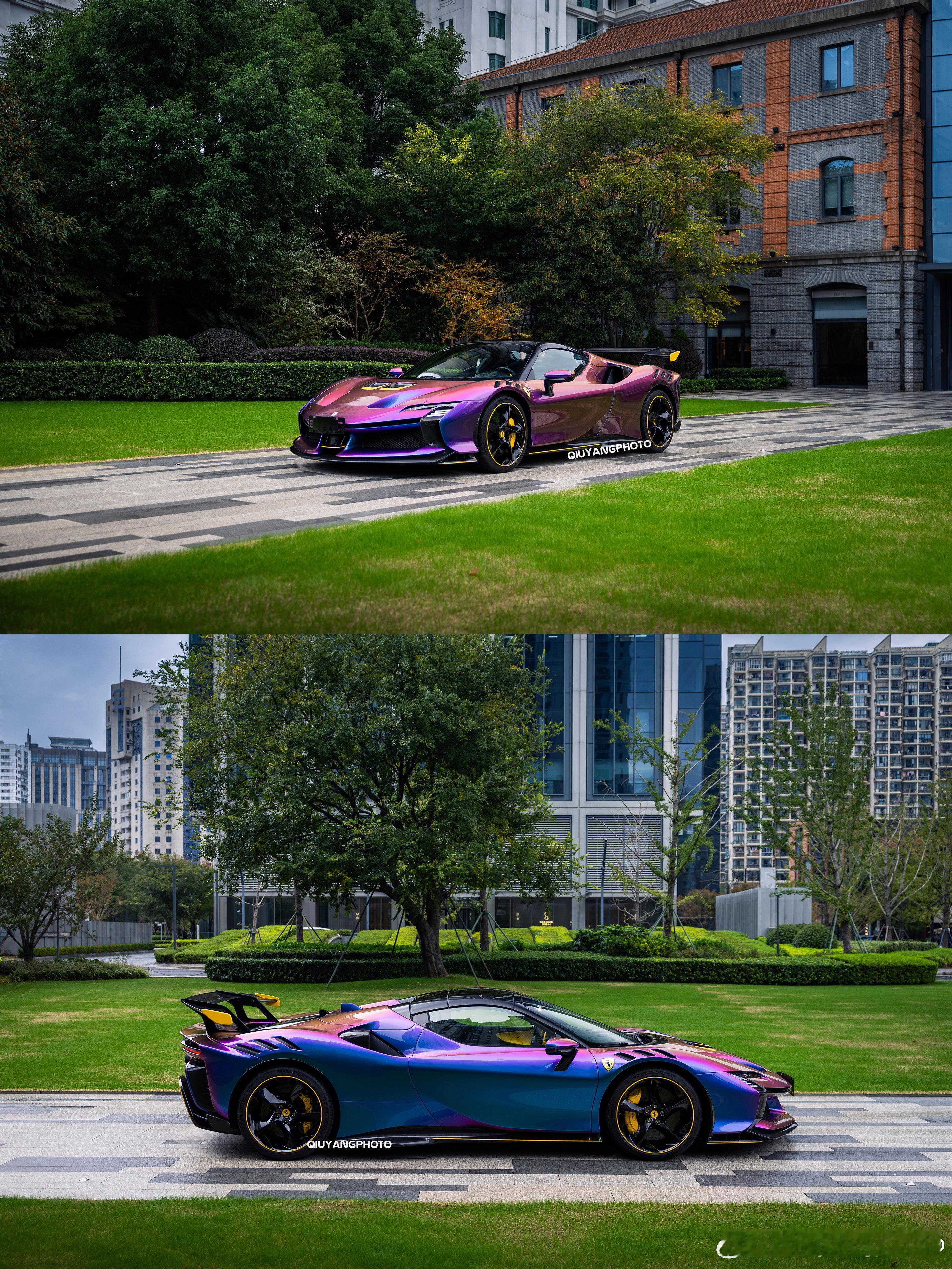 Ferrari SF90XX Spider 特别的Azzurro Iridescente 漆面,辅以Giallo Modena的黄色拉花及内饰点缀🙈 这个漆面实在太吸睛了