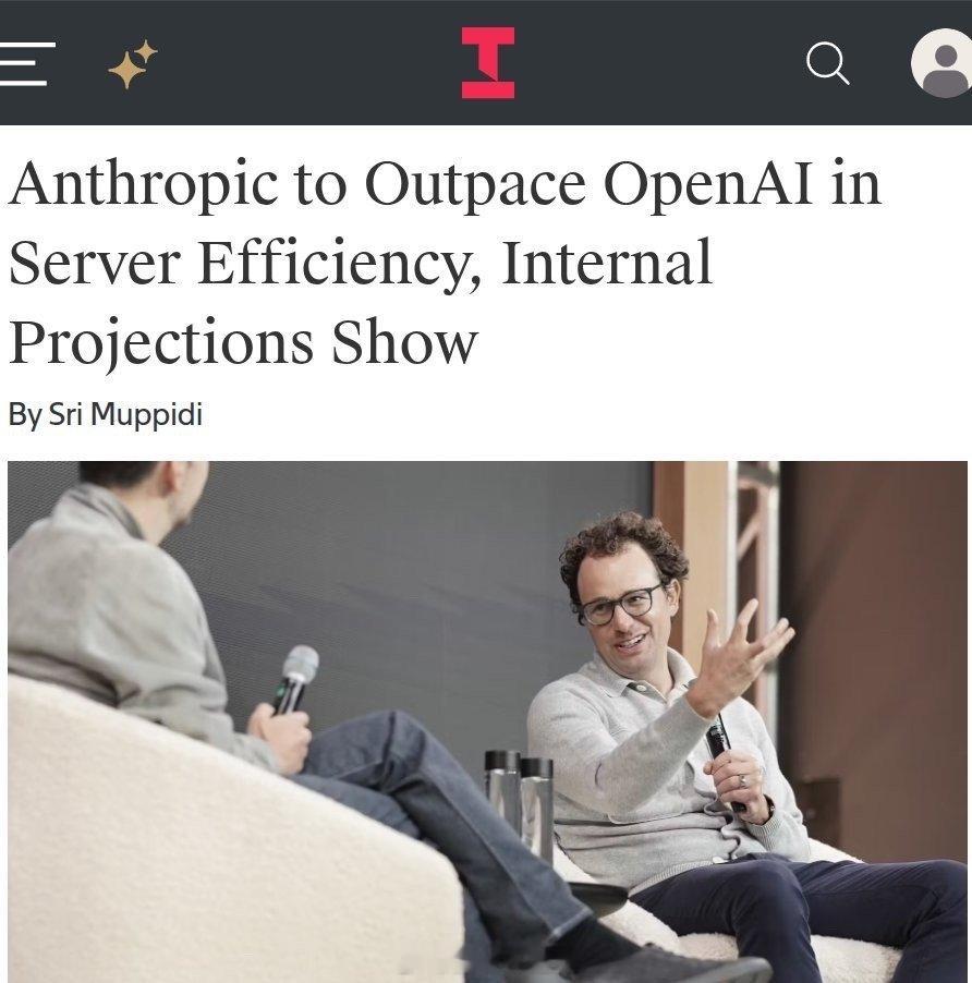 Anthropic要做快艇,比 OpenAI 更高效地运行 AI。《The Information》发布了一篇报道,透露Anthropic 正在明确转向效率优先策略,预计未来几年计算支出将低于 OpenAI,同时保持模型的激进定价。Anthropic 内部预测显示,2025 年计算支出约为 60 亿美元,而 OpenAI 约为 150 亿美元;到 2028 年分别增至 270 亿美元 对 1110 亿美元,这意味着 Anthropic 在单位成本上具有显著优势。这一成本态势与其收入路径一致:Anthropic 目标 2028 年收入约 700 亿美元,并计划于 2027 年实现现金流正值,主要依赖企业和 API 需求。OpenAI 的名义收入仍更高,2028 年预计约 1000 亿美元,但由于基础设施开支巨大,盈利被推迟,现金流正值至少要到 2029 年。供应端也支持这一趋势:Anthropic 将工作负载分散在 Google TPU、Nvidia 和 Amazon 上,包括与 Google 新达成的协议,到 2026 年可获得多达 100 万个 TPU 和超过 1GW 算力,若利用率高,可大幅压缩每 token 成本。更便宜、更高效的芯片可能是 Anthropic 预计 2027 年实现盈利 的原因之一。报告还指出,OpenAI 耗资 400 亿美元 的“备用”服务器建设是其计划的一部分,旨在最终变现数亿非付费 ChatGPT 用户;而 Anthropic 80% 收入来自付费 API,且在服务规模小得多的免费用户群上支出较少。