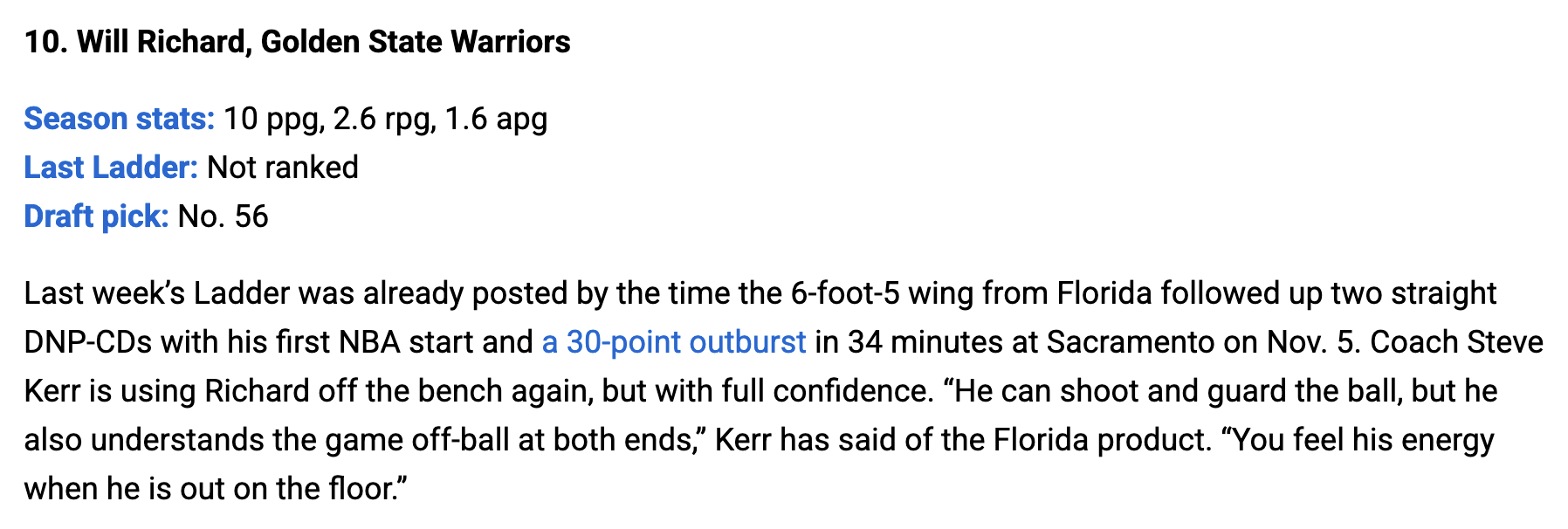 理查德进入最新一期NBA官方新秀榜前十,以56顺位能这么快站住脚跟,实属不易,继