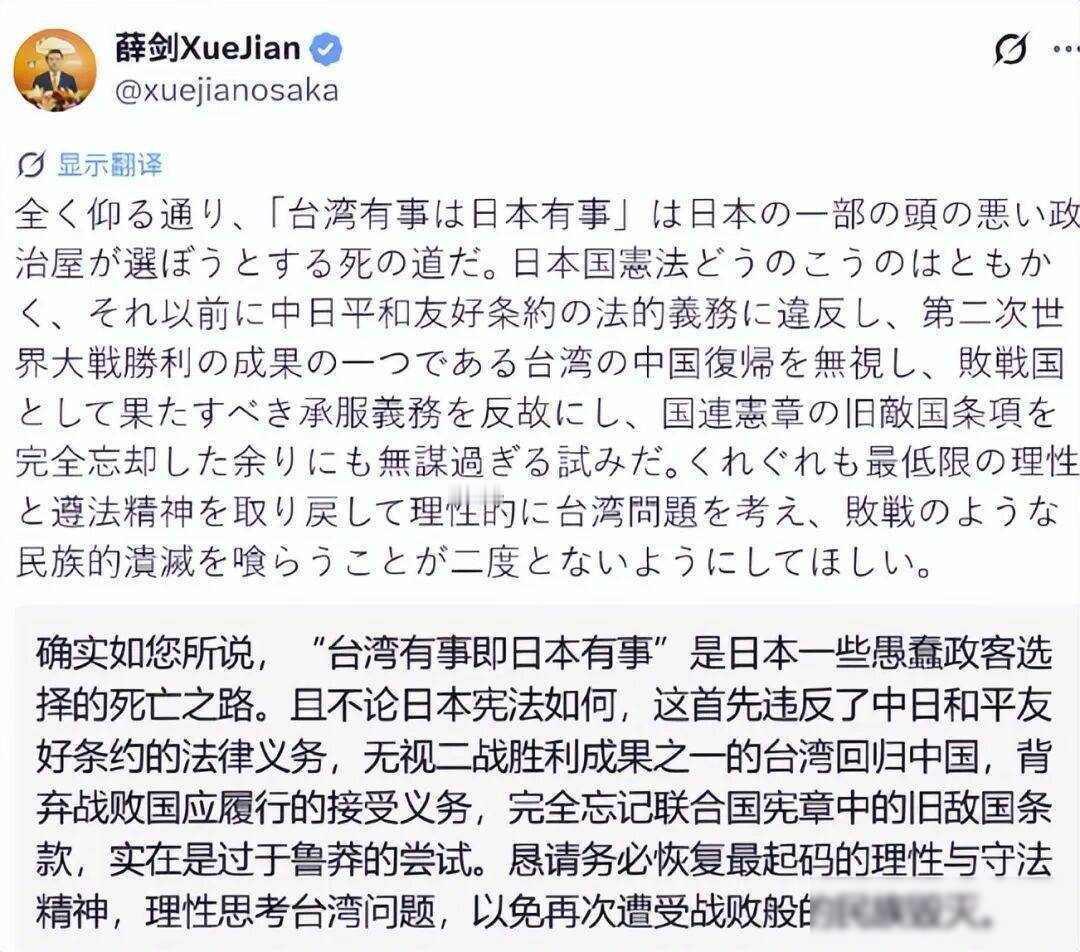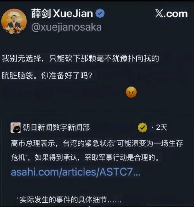 高市喊话台海,薛剑怒怼东京,琉球旧账被翻出 日本新首相高市早苗在国会发表言论,提到如果台湾发生战事,日本也要跟着一起承担,这种说法她在2021年就已经提过,这次只是重复一遍,她还暗示可能动用集体自卫权,这意味着日本军队有可能参与作战,中国方面迅速作出回应,大阪总领事薛剑在X平台直接回复说“伸过来的脏脑袋,砍了就是”,虽然没有点名,但大家都明白他在指谁。 日本那边反应很激烈,网民向平台投诉要求删帖,连驻澳大利亚大使也站出来说这种行为等于向日本宣战,外务省受到压力开始考虑驱逐薛剑,国会里几个主要政党罕见地联合起来施压,这让高市早苗面临很大压力,如果她控制不住局面,刚建立的政治威信可能就要垮掉,但薛剑并没有退缩,他继续发帖子指出高市早苗的言论违反了日本战败后应该遵守的规定,还引用《联合国宪章》的具体条款,说这种言论是在挑战战后国际秩序。 很多人只关注台海局势,却忽略了冲绳那边的动态,冲绳原本叫做琉球,在1879年被日本强行吞并,在那之前它与中国关系密切,使用中文进行朝贡往来,文书也采用汉字书写,二战结束后盟军曾计划将琉球归还中国,但蒋介石没有接受,1971年美国把管理权转交给日本,中国政府当时就指出这一做法不符合国际法,2013年《人民日报》还提到琉球地位问题尚未最终确定,现在这个话题又被重新提起。 最近在冲绳街头,很多人参加游行活动,喊着要恢复主权,美军基地就在那里,当地人每天被噪音困扰无法安睡,抗议行动一直持续,中国作为联合国常任理事国,历史上与琉球有过渊源,却只对台湾问题发表意见,对琉球问题保持沉默,这种做法显得不够合理,如果真心维护战后国际秩序,那么琉球这块地方也不能忽略。 高市早苗拿台湾当作理由来加强美日同盟的关系,却无意中暴露了另一个问题,台湾和琉球在地理上靠得很近,历史上也有联系,一个地方出现状况,另一个地方就可能跟着受到影响,中国如果只关注台湾的回应,就容易忽略琉球在法理上的争议,这件事不是简单的是非问题,也不是单独一方能够解决的。 我仔细想想外交这个事,有时候态度太强硬了反而容易让事情变得更复杂,薛剑那句“砍掉”听着虽然解气,但真要把问题解决,光靠情绪是不够的,高市想通过喊话来立威,结果却招来一堆麻烦,这说明政治发言不能太过随意,琉球的问题已经搁置了这么多年,现在又被重新提出来,可见历史遗留的问题从来不会自动消失,它们只会等到某个时机再次出现。 台海局势紧张,冲绳那边也不平静,两边的麻烦就像一根绳子上的两个结,解开一个结,另一个结还在那里,日本想利用台湾问题来牵制美国,中国如果只关注台湾,琉球地区早晚会变成另一个冲突点,现在没人公开谈论琉球的事,但私下议论的人越来越多,这个问题不是最近才出现的,只是大家以前都故意不去管它。高日早苗 琉球局势 高市外交 高市早苗下台 高市首相 高市早田 高市内阁