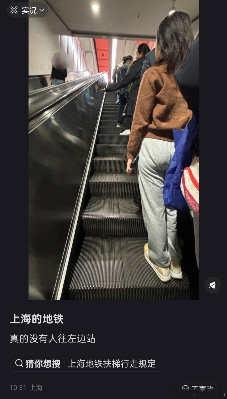 上海地铁,真的没有人往左边站。左行右立不是早就取消了吗,这样对电梯不好。