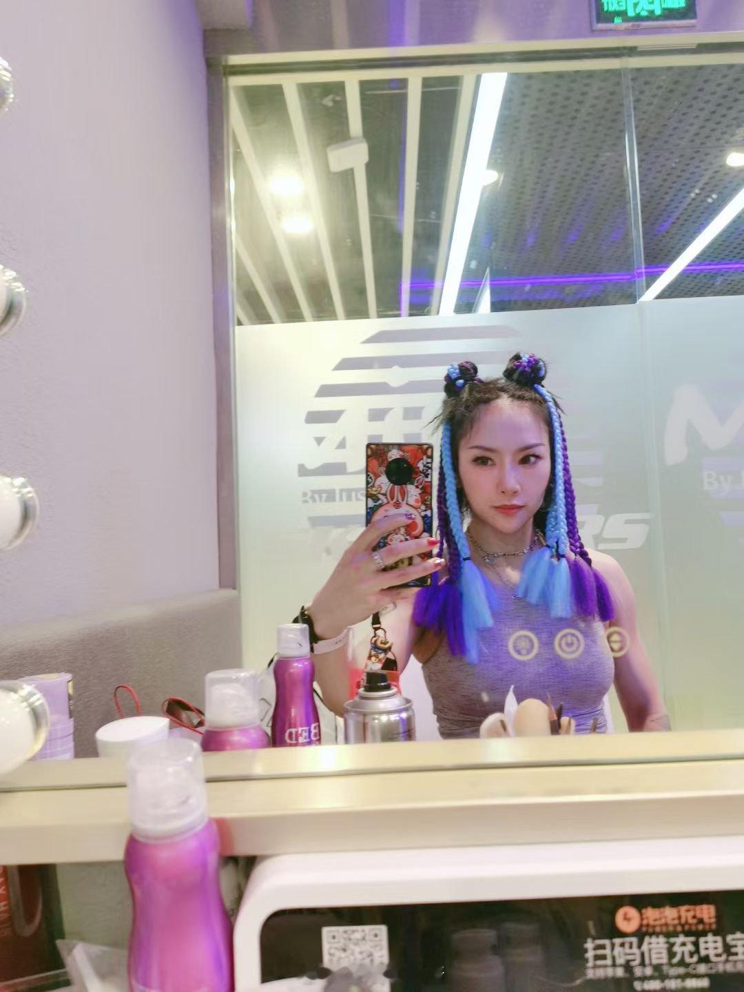 拍摄课程的时候就是各种换造型这一头五颜六色的小辫子,真的是鲜艳到了心巴上