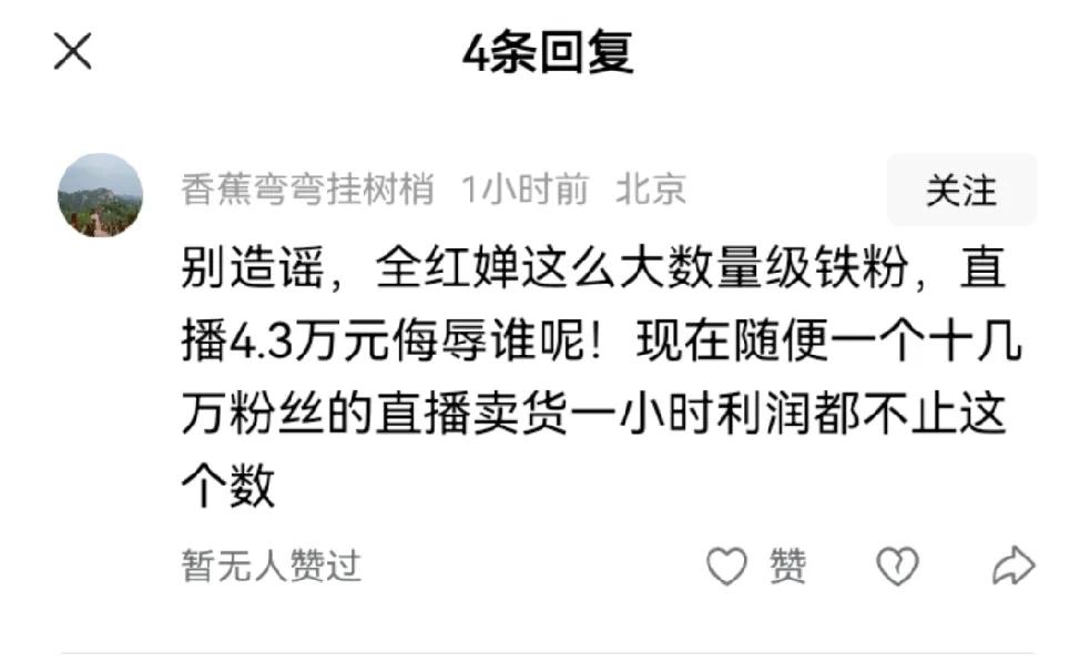 “别造谣,全红婵直播才4.3万元,侮辱谁呢!” 近日,全运会结束,全红婵首次直播,婵宝一共直播了一个小时,直播打赏换成钱一共是43598.60元。 善良的婵宝没有据为己有,而是把这些钱全部捐给了乡村儿童。 虽然婵宝做了一件好事,却受到了网友的质疑。 有网友说,现在随便一个十几万粉丝的直播卖货一小时利润都不止这个数,况且全红婵一千多万的粉丝。 其实,这有什么可奇怪的呢! 1.婵宝这是第一次做直播,也不是大咖级别的博主,没有什么直播经验,有这个收入全靠婵宝积攒的人气,已经不少了! 2.婵宝没有直播卖货,靠的是纯打赏,而且才一个小时的时间,还有很多喜欢婵宝的粉丝不知道她开直播呢。 全红婵就是一个大格局的孩子,还很孝顺,她自己是非常节俭的,一件衣服穿好几年,但她给爷爷奶奶钱,一给就是一万。 婵宝从农村走出来的,她深知孩子们成长条件的困难。 这次,婵宝希望农村的孩子用这些钱能买到他们自己喜欢的东西。 同时,希望这些孩子,能像婵宝姐姐学习,再学习上不怕苦,不怕累,将来做个对社会有用的人。大家怎么看?