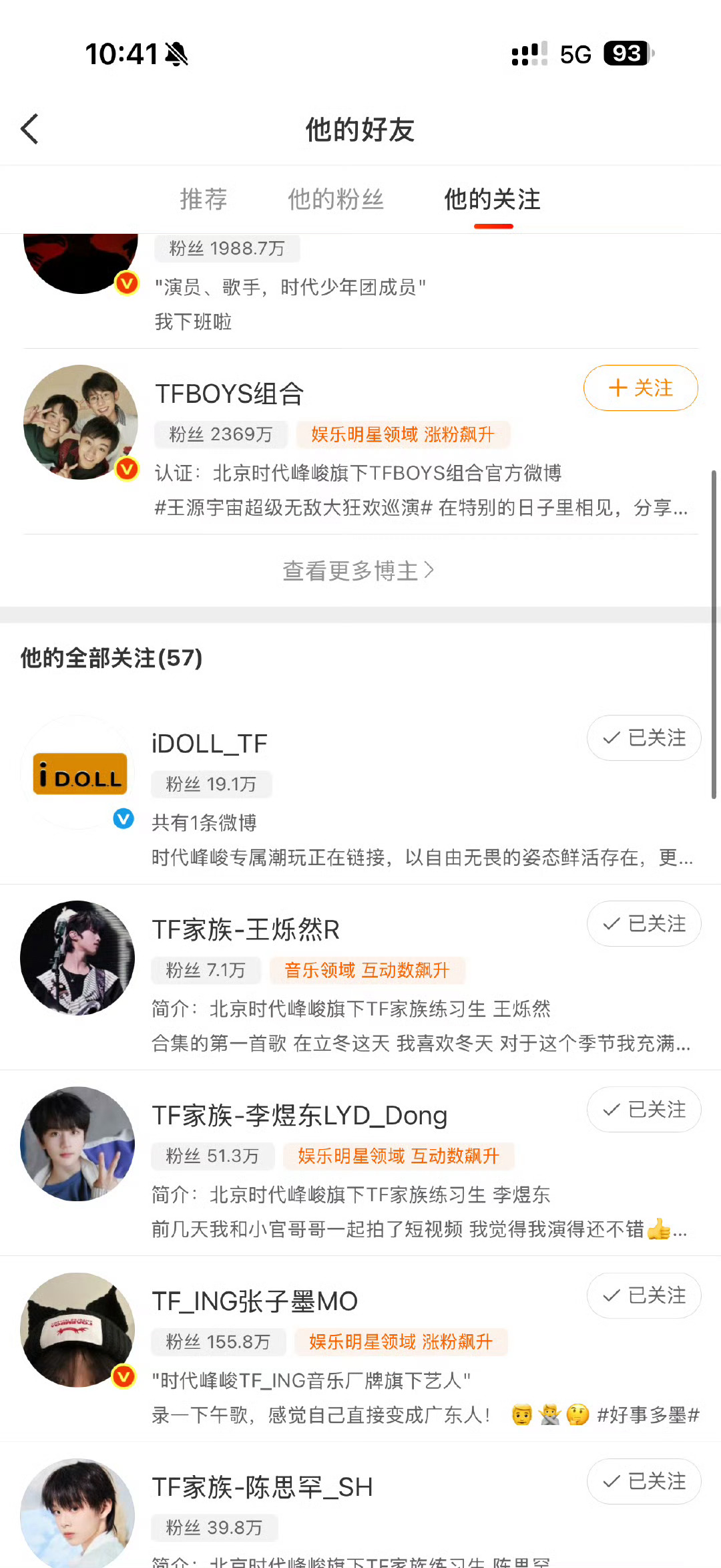有网友发现时代少年团和四代都取关了陈天润,也有说是陈天润半夜上线移关了他们