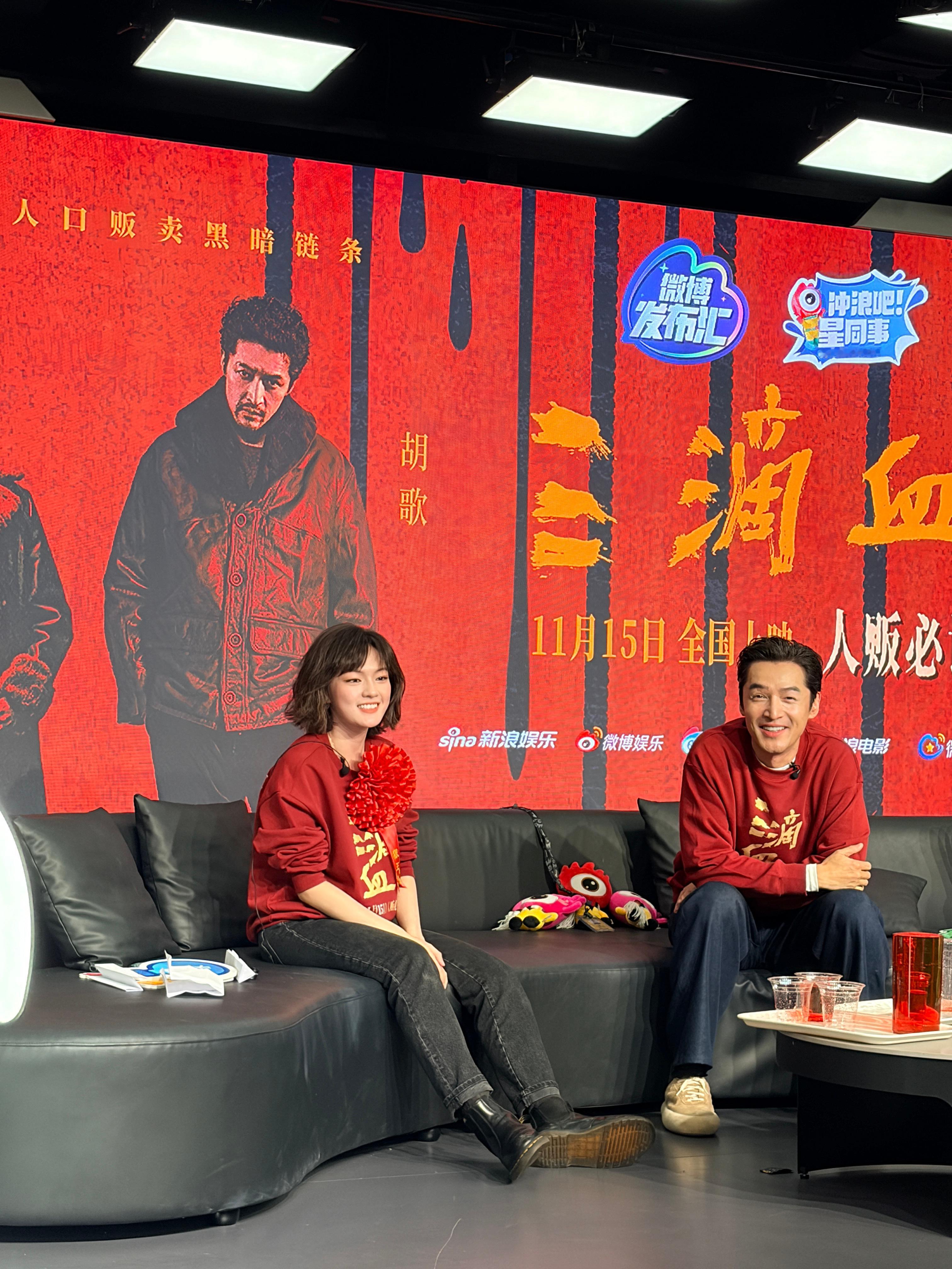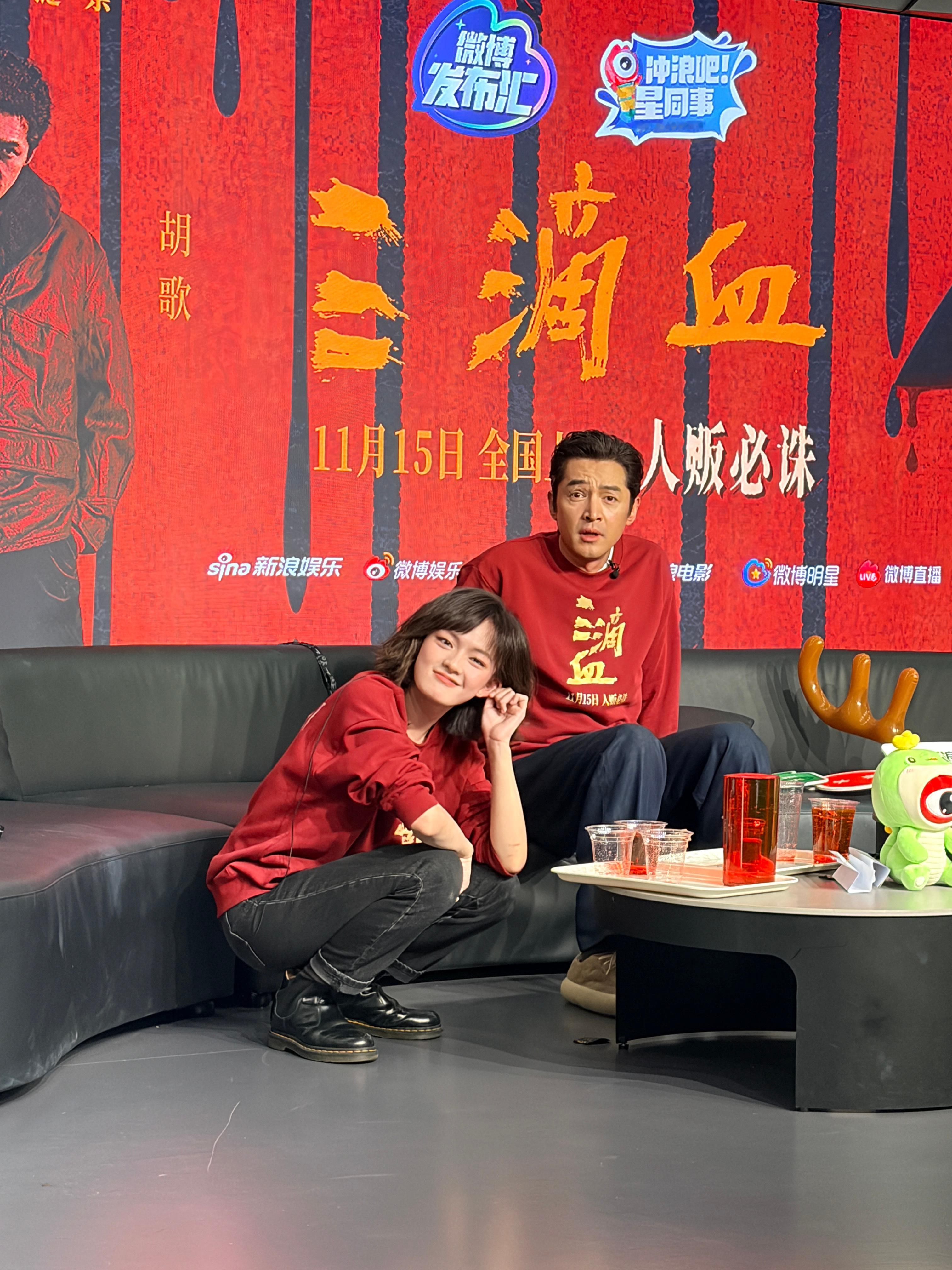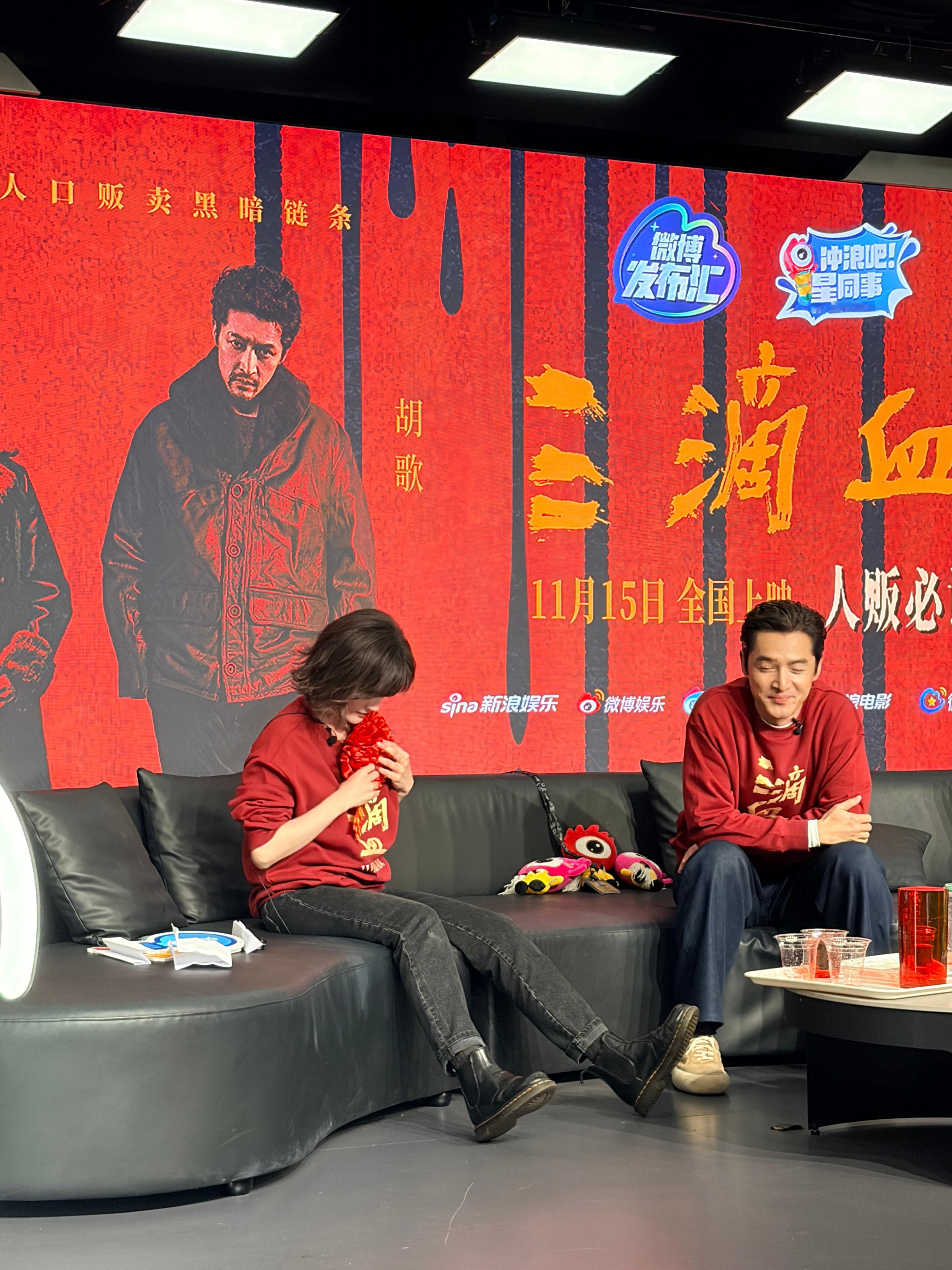 《三滴血》扫楼,胡歌赢了把奖励的大红花送给了文淇,可爱二人组