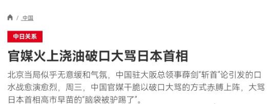 法媒感到非常惊讶! 法媒称,中国官媒竟然以破口大骂的方式赤膊上阵,大骂日本首相高市早苗的脑袋被驴踢了。11月13日,根据法新社报道,法媒表示,官媒央视公号“玉渊谭天”发文题为“搞事的高市”,直接点名抨击日本首相高市早苗“搞事”,斥责:“‘台湾有事,就是日本有事’,这话,高市早苗是怎么敢说出口的?莫非她的脑袋被驴踢了?” 日本过去在涉台问题上惯常保持含糊态度,历任首相都避免直白挑衅,但高市早苗刚上台不久,却用这种毫不掩饰的语言将日本与台湾问题直接捆绑。这触碰了中国的底线,也完全打破了双方在这一敏感话题上维持的表面平衡。 在这种情况下,中方的反应自然不会客气。官方媒体“玉渊谭天”直接点名,用通俗甚至带有火药味的语句对其进行批评,不是因为情绪失控,而是有意去掉外交辞令的包装,让信息毫无误解空间。 底线问题上,中方选择用最能被听懂的方式表明态度——你敢把台湾问题当成日本的事,那后果只能自己承担。 法国媒体对这种直接的批评方式感到惊讶,他们习惯了各国用礼貌用词表达立场,很难接受这种“不绕弯”的口语化表述,他们把它称作“骂大街”,甚至认为这是在发出明确警告,暗示高市早苗如果继续这种言行,可能要付出实际代价。 但法国媒体的惊讶,更多是因为没搞清事情发展过程的逻辑——中方并不是无缘无故升级言辞,早在APEC峰会期间,就已经通过正式渠道提出了严正警告,只是高市早苗完全不当回事。 既然常规警告无效,那升级回应就是必然的。要让对方明白,中国的立场不是用来试探的,也不是靠模糊语言去揣测的,台湾问题是中国的内政,不容日本等外部势力插手,这一点中方一直讲得很清楚。 高市早苗却用一句挑衅性的口号,把自己推到了对立面,还把外交摩擦推向了舆论焦点。 这次公开点名和犀利措辞,本质上是亮底牌,不给对方留模糊空间,就是要让高市早苗和她背后的势力清楚,既然无视警告,那就得直面彻底的公开批评,中方不可能在核心利益上退让,如果还有人心存侥幸,那只能是误判形势。 责任很明显,高市早苗自己挑起的风波,自己让事态升级,中方之前已经给过机会,而她选择用更大的挑衅来回应,这就意味着她要承担被正面回击的结果。 她可能原本以为一句话只是表态,但这种表态的分量,在涉及中国领土主权时,绝不是一句轻飘飘的话那么简单。 实力和信心,如今已经可以让中国可以不必总是用复杂的外交话语,去表达最严厉的立场。