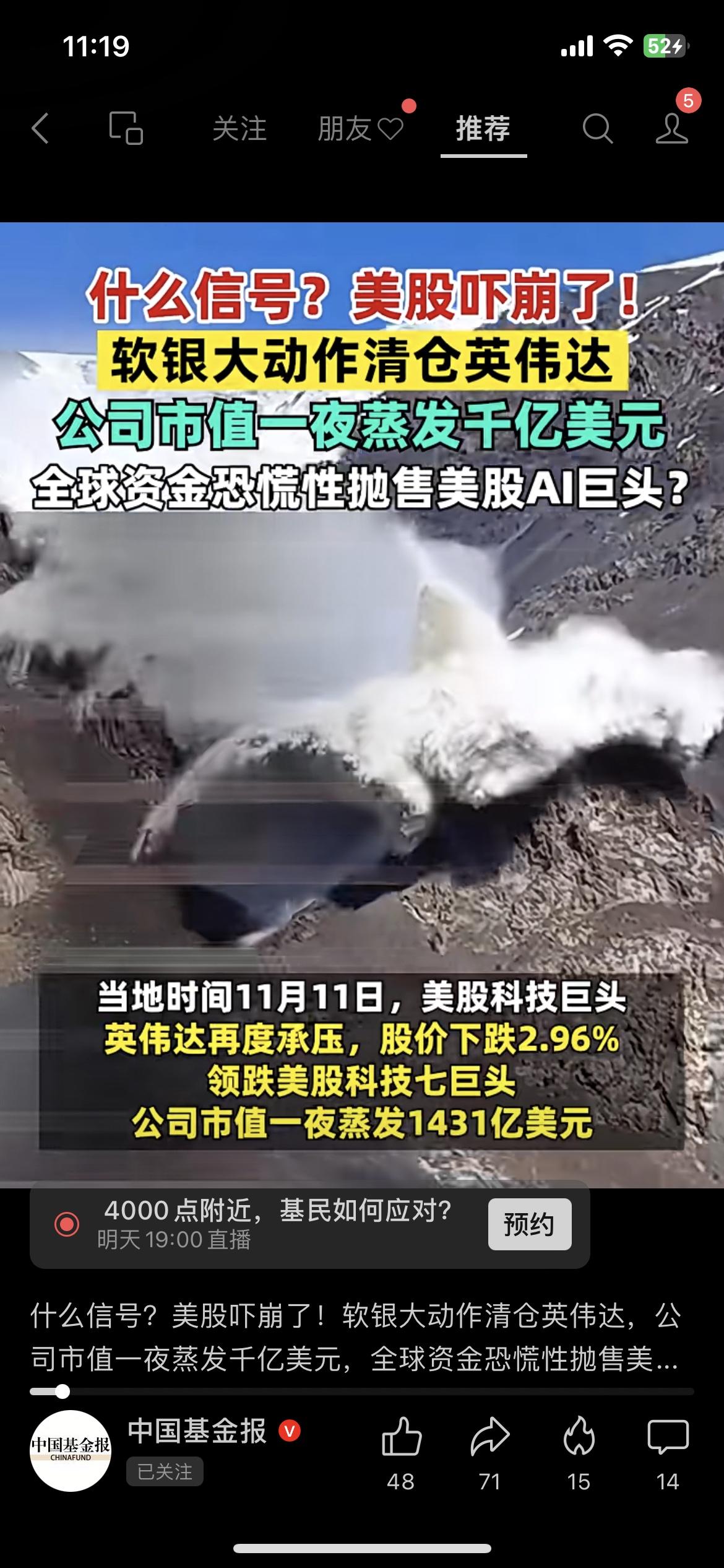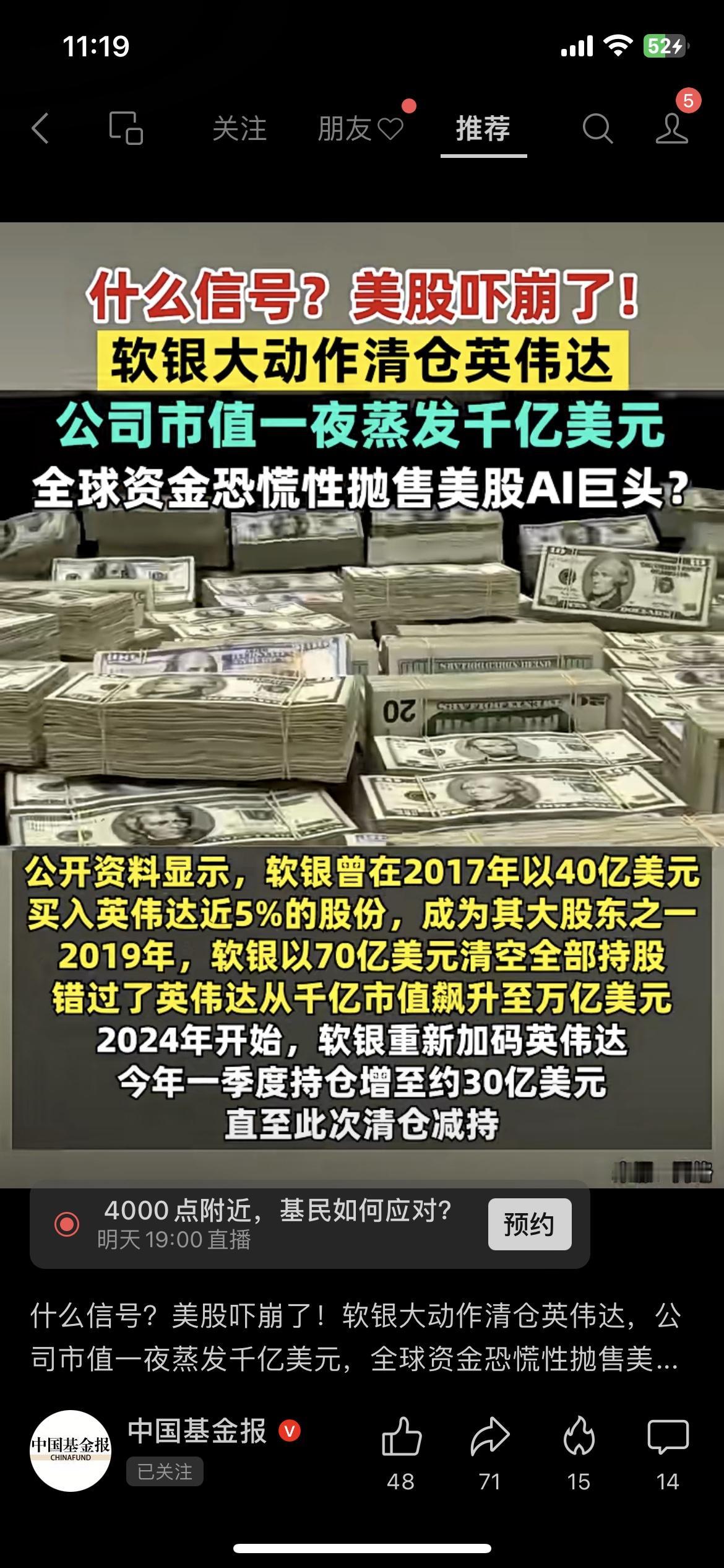 血崩!孙正义清仓英伟达,没了1400亿 刚炸的财经大瓜!孙正义把英伟达股票全清了,直接让英伟达一夜蒸发1431亿美元——这钱够买好几个小国家的GDP了!更绝的是:2019年他清仓英伟达,错过人家从千亿涨到万亿今年刚加仓没俩月又卖,这操作是“反向指标”实锤?这波是孙正义看衰AI,还是AI股真要凉?提醒:手里有AI股的,今晚别睡太死,明早开盘先盯盘!觉得有用的点赞关注,后续接着唠行情!英伟达 英伟达公司