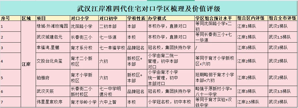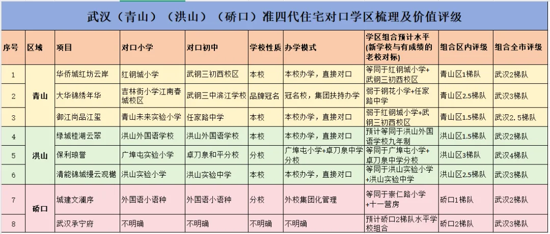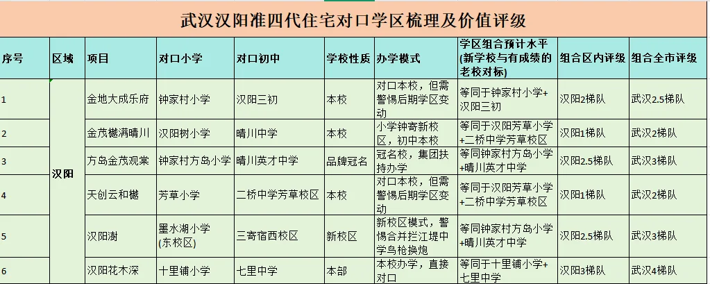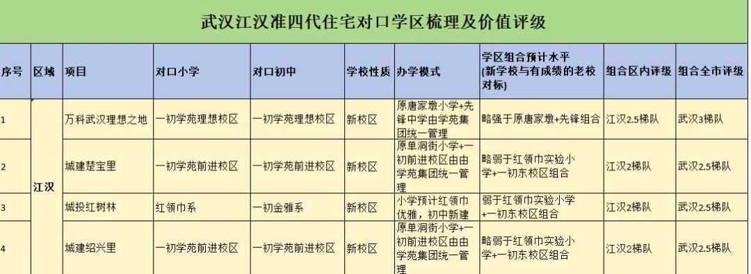 如今在武汉买房有个奇怪的现象,就是谈到新房就是“准四代”,并且除了要四代,要高得房率,还得要有学区,这就导致了很多朋友有了新房“学区困惑”,名校新校区、分校、冠名校区、合作办学等一众概念,难辨真伪。今天大白就结合武汉各区准四代住宅的学区对口情况给大家具体分析下,到底学区的含金量如何,是不是值得入手(右划可看汇总表)