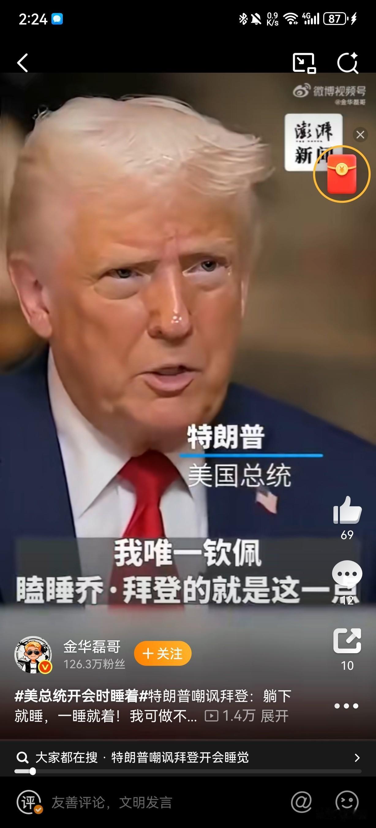 特朗普前两天在工作会议中再一次睡着被媒体做成了打瞌睡合集,此处得艾特瞌睡乔拜登 特朗普当初嘲讽拜登:躺下就睡,一睡就着!我可做不到…… 如今老特做到了,从嘲讽,钦佩,到超越拜登