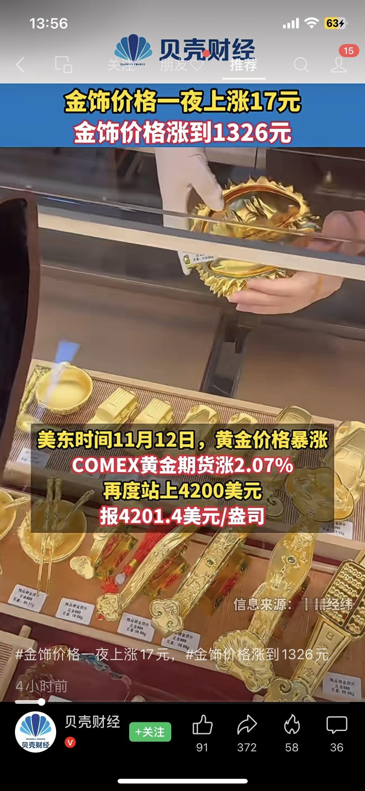 突发!11月12日黄金暴涨破4150,现在该囤金吗? 家人们,金价又疯涨了!2025年11月12日晚间,国际黄金价格突然暴涨40美金,直接突破4150关口,国内金饰价格也跟着同步上调!之前犹豫没下手买金镯、金项链的朋友,是不是拍断大腿了?提前囤金的是不是偷偷乐?你们觉得金价接下来还会涨吗?评论区聊聊囤金攻略!金价 黄金参考 黄金售卖价格