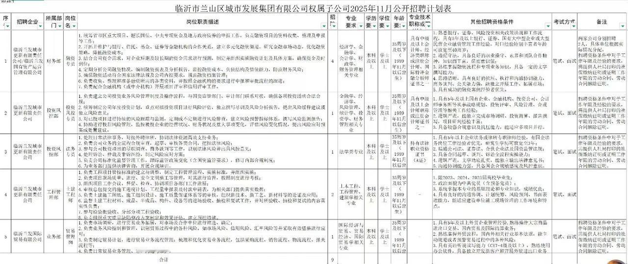 兰山城发集团子公司招聘公告 报名时间:2025年11月18-11月24 有符合条件的可以多关注。