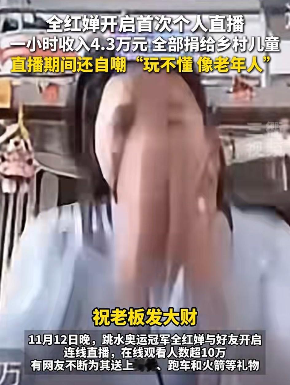 首次直播约1小时,观看人数超10万,收入高达4.3万元,全红婵这波“操作”不得了。不过直播收入她没要,而是全部捐给乡村儿童。有这“魅力”和格局,她值得拥有最好的,大家说是不是?