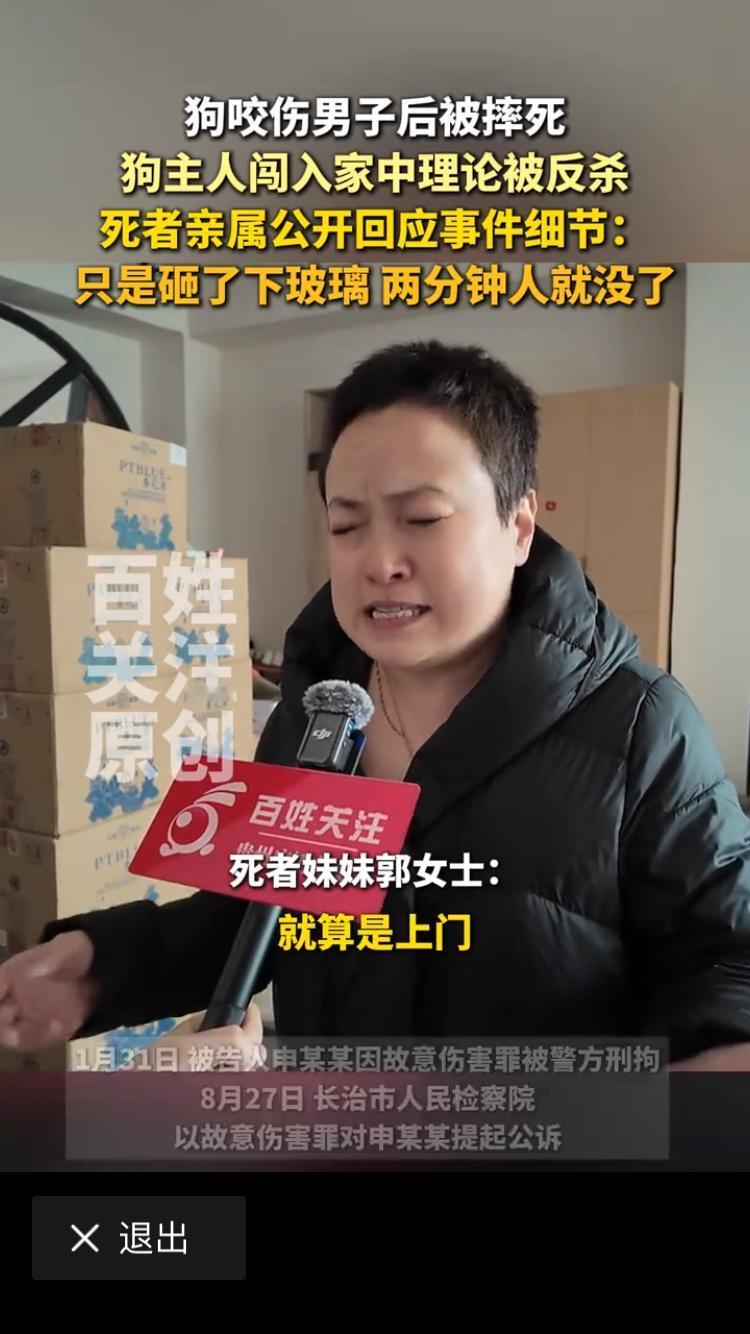 法治社会需要双方都理性地看待。网络一边倒的批评受害者家庭,我们也应该听听他们家属的心声。 受害者的妹妹,在接受了百姓关注媒体的采访,他说哥哥是一个善良,正直,有爱心,有担当的男人也是一家的顶梁柱。 他哥哥只是砸坏了对方的门,砸了一下玻璃有点磕磕碰碰,在激动的情绪下难免受点伤。但是不幸的事还是发生了。 双方都希望法律给一个公正的判决。群众的事,无小事,血淋淋的教训。