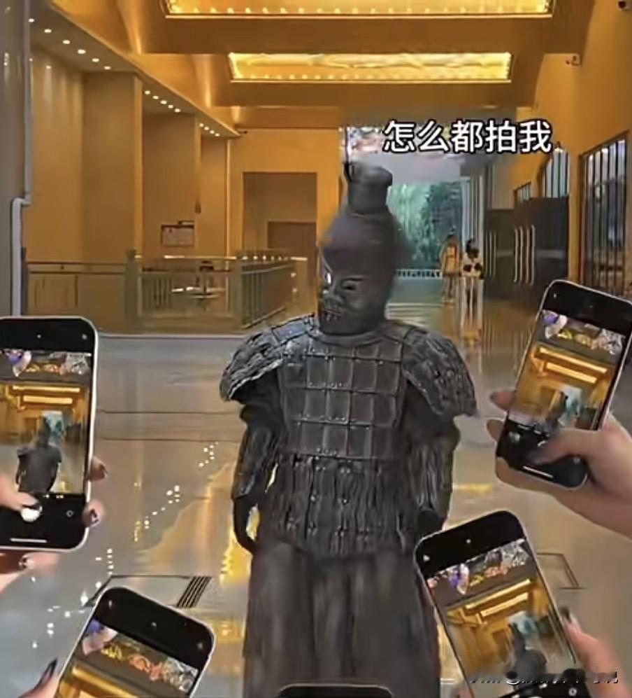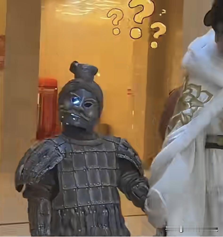 当国产机器人穿上兵马俑外壳后,简直蠢萌蠢萌的太可爱了!前两天看到有人将新款的国产机器人套上了兵马俑的外壳,然后与秦始皇COS搭档!大家都知道国产机器人只是一个人的造型,很多身体部位只是做了个样子。所以,穿上兵马俑后样子看起来十分滑稽,除了有点蠢萌外还有点儿奶凶奶凶的,走在路上回头率超级高。只不过如果有人拿这个来恶作剧,那乐子可就大了![捂脸]