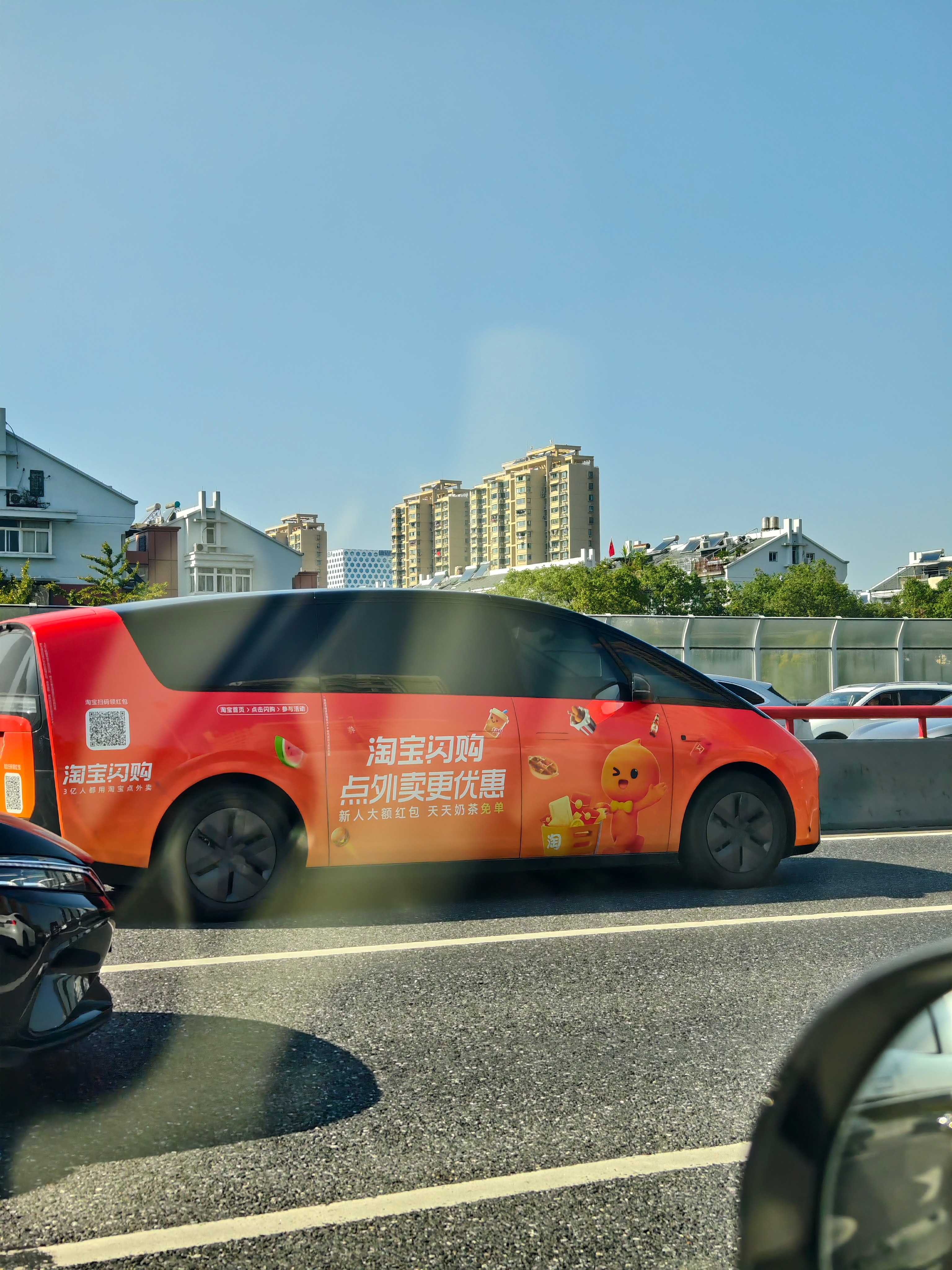 路上抓到一台“淘宝闪购”理想MEGA,别说这配色想到吸引眼球。