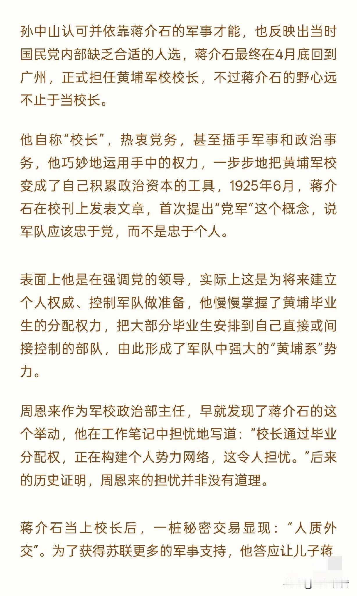 孙中山先生为什么选择蒋介石担任黄埔军校校长? 孙中山先生推翻了帝制,却无法平定军阀割据、各自为政、混战不断的乱局。痛定思痛,孙中山先生终于认识到建立一支属于自己的军队的重要性,于是开始筹建红埔军校。 孙中山先生为什么选择蒋介石担任红埔军校校长?其中原因有很多,包括蒋介石在陈炯明叛变时表现出对孙中山的绝对忠诚;蒋介石与孙中山的重要助手陈其美有师徒关系,获得孙中山的信任等,但还有其他更重要的原因。下面这篇文章就此作出深入分析,不无道理,值得一读。