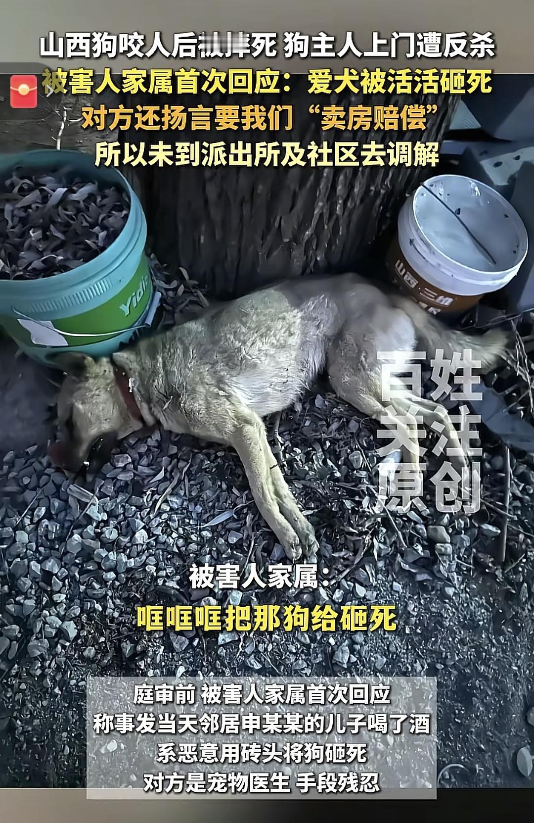 山西“狗咬人”案郭某妹妹发声:家里的顶梁柱没了,那人喝了酒,暴力摔狗,我们才是受害者! 可这话一出,网上的言论还是一边倒 妹妹郭女士说“那人有多狠,喝了酒,拿板砖哐哐哐的把狗直接砸s,狗的脑浆都出来了,派出所打电话叫我嫂子上门调解,我嫂子说还解决什么,这人电话里那么凶,要我们卖房赔偿,所以我嫂子没去做调解”。 就光她说的上门调解这事,派出所打电话不去调解,自己上门调解这到底是人家说的话狠还是自己平时的作风狠? 申某当时采访时说了“我搁那等了一下午,他家都没来人”,人家是讲道理的啊 至于凶,说实话,人都被咬了,凶你家没人管狗,这不很正常吗? 郭女士的这一席话里,反正我没看出来,她对于哥哥的去世有多伤心,反而更多的是对狗被打后的同情,你们觉得呢? 被狗咬伤案