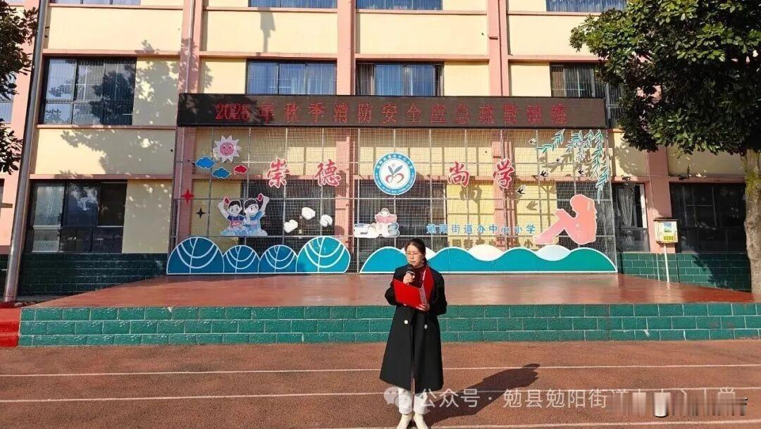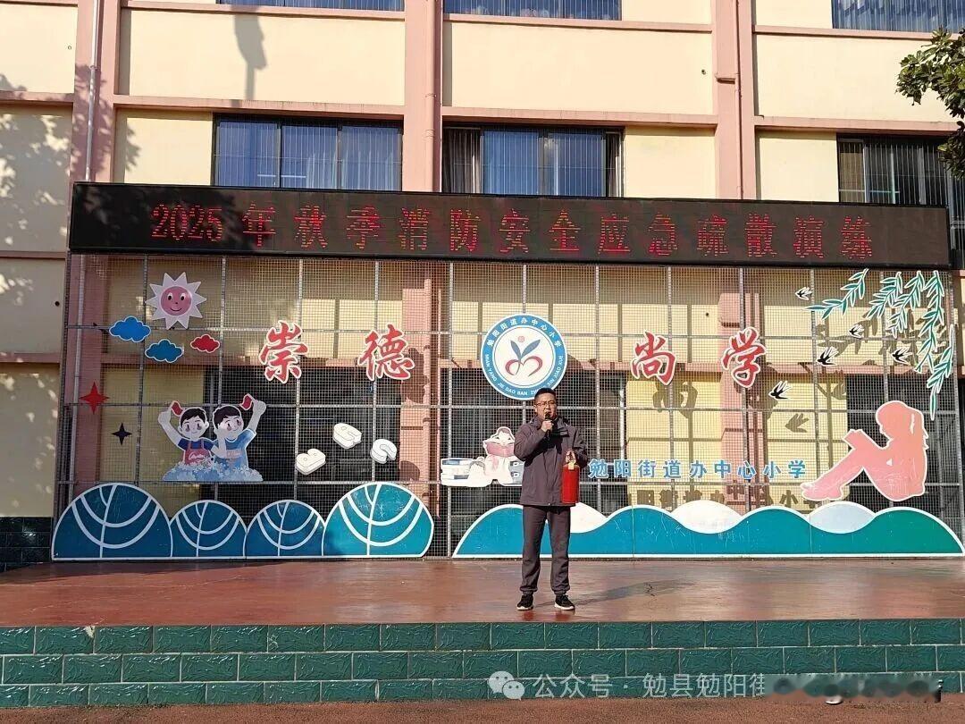 11月13日上午,勉阳街道办中心小学消防安全宣传月系列活动之应急疏散演练正式拉开帷幕。