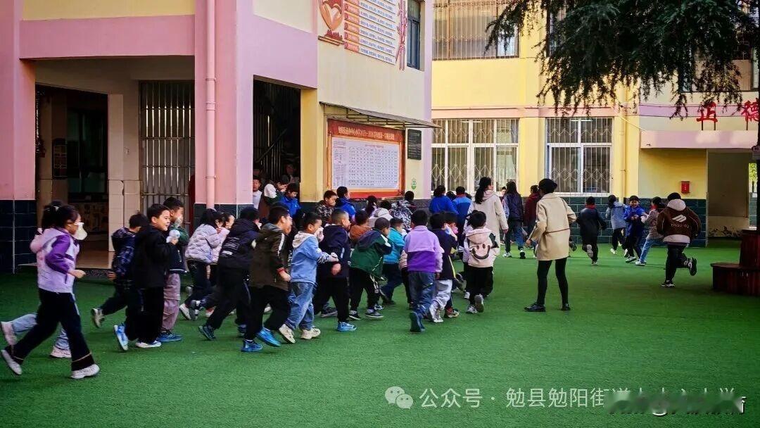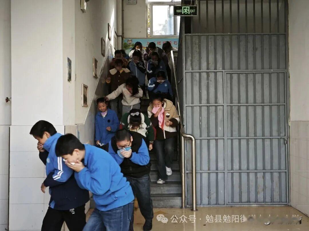 11月13日上午,勉阳街道办中心小学消防安全宣传月系列活动之应急疏散演练正式拉开