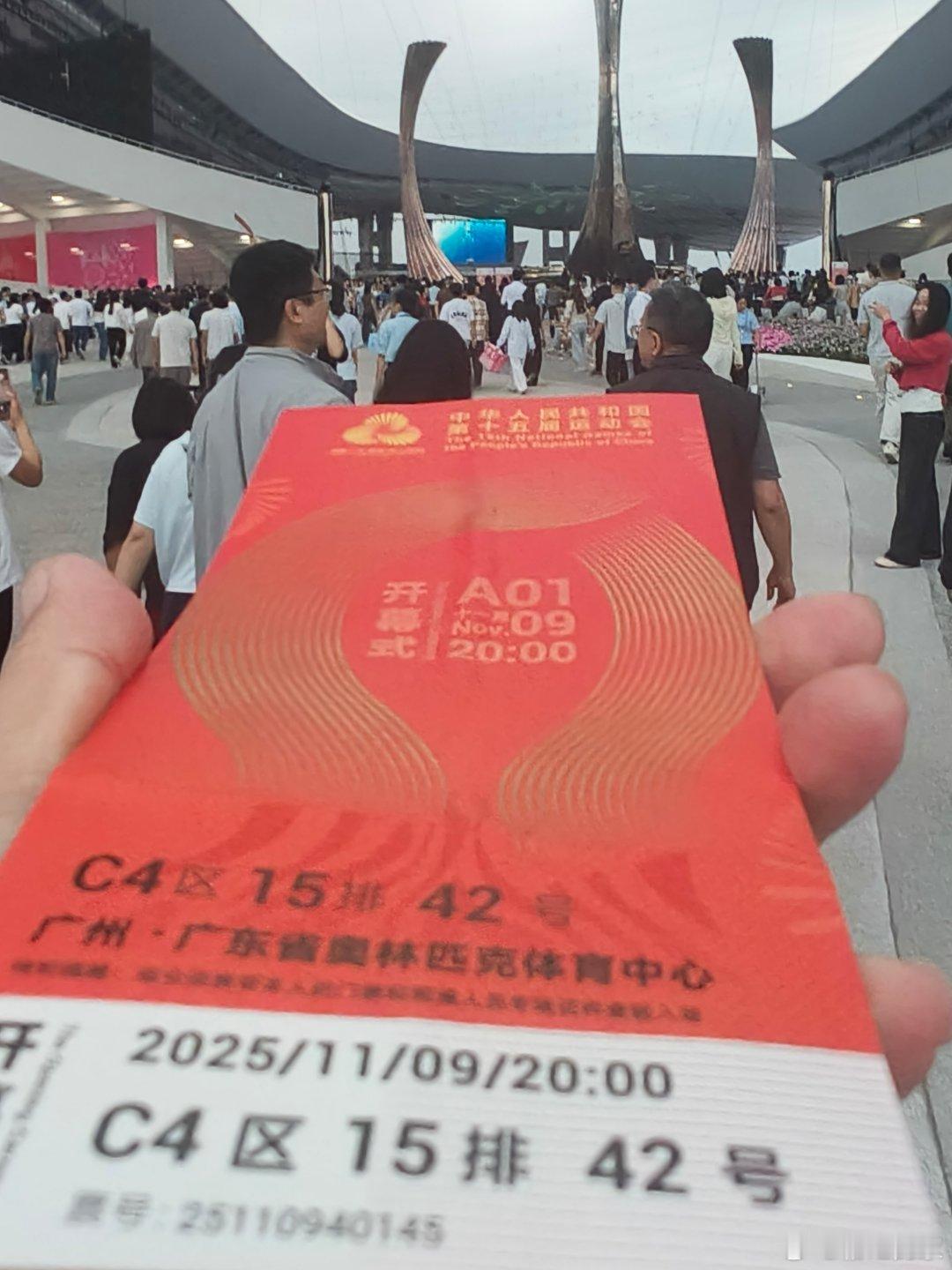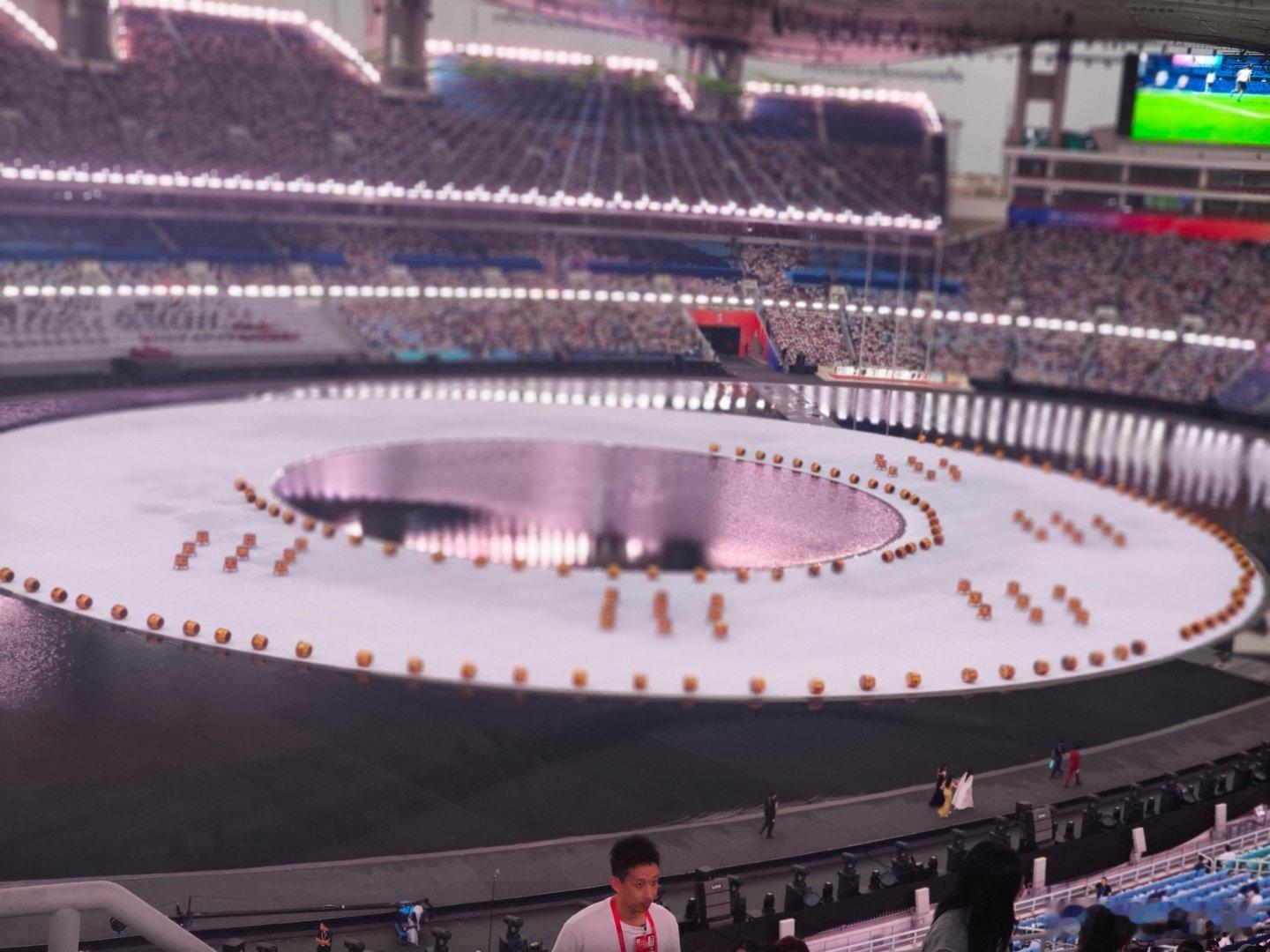 在经历了漫长的集合,转场,入场等环节后,终于迈步进入到第十五届粤港澳全运会开幕式举办地--广东奥体中心体育场。当看到场地中心美轮美奂的水上布景,体育场上空天幕点缀得如同童话王国,当现场八万人发出排山倒海的轰鸣,号称还去过几次大赛的旺叔还是震撼了一把。