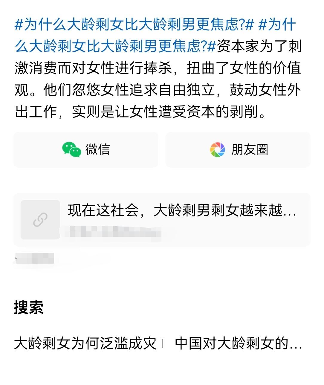 有网友让我想个办法,叫城市大龄剩女回村。 因为村里光棍实在太多,有的村已经很多年没娶进媳妇儿,好多年没有新生儿出生了。 这可为难我了,我能有什么办法让他们回村? 我看那位网友是SD的,就说,要么你们对她们说“回来吧,只要愿意回来,就让你们上族谱,死后入祖坟”,看看行不行? 要是这样她们都不愿意回来,那就真的一点办法都没有了。