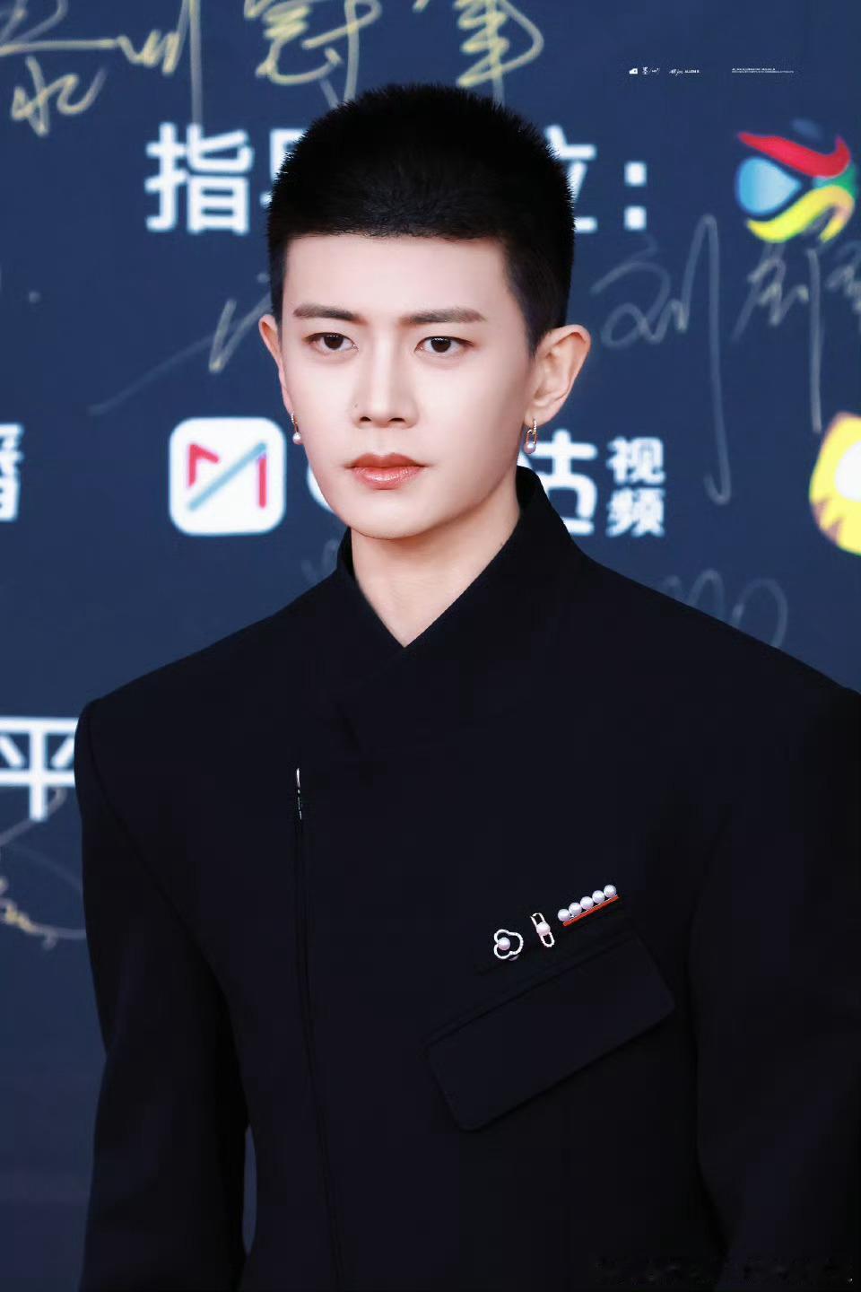 任嘉伦这次的红毯造型, 真的让人眼前一亮! 清爽的寸头搭配一颗珍珠耳坠,