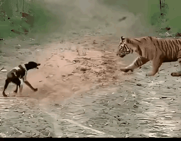 狗子跑也不是,打也不是,硬着头皮吼两声想镇住老虎? 这波“以卵击石”的勇气,结果意外得让人哭笑不得! 谁能想到,小体型的狗子遇上百兽之王,没吓得瘫软,反倒炸着毛狂吠,估计心里在想“气势不能输”。 可老虎压根没把这“小奶狗叫”放眼里,反而凑过来闻了闻,那淡定的样子,像极了大人看闹脾气的小孩。 狗子瞬间懵了,吼也不是停也不是,僵在原地动都不敢动——原来勇气这东西,遇上绝对实力真就不管用了。 其实动物界的“硬碰硬”,本质是不懂权衡的冲动,就像生活里明知不可为而为之的傻气。 有时候认怂不是胆小,是看清局势的清醒。 你家毛孩子有没有过这种“自不量力”的搞笑瞬间?评论区聊聊!